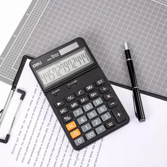 | Особенности | Калькулятор настольный Deli, EM320, 12 символов, 2 источника питания, пластиковый, черный |