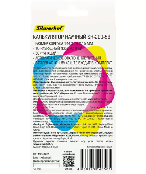 Калькулятор Silwerhof SH-200-56 научный черный 10-разр.