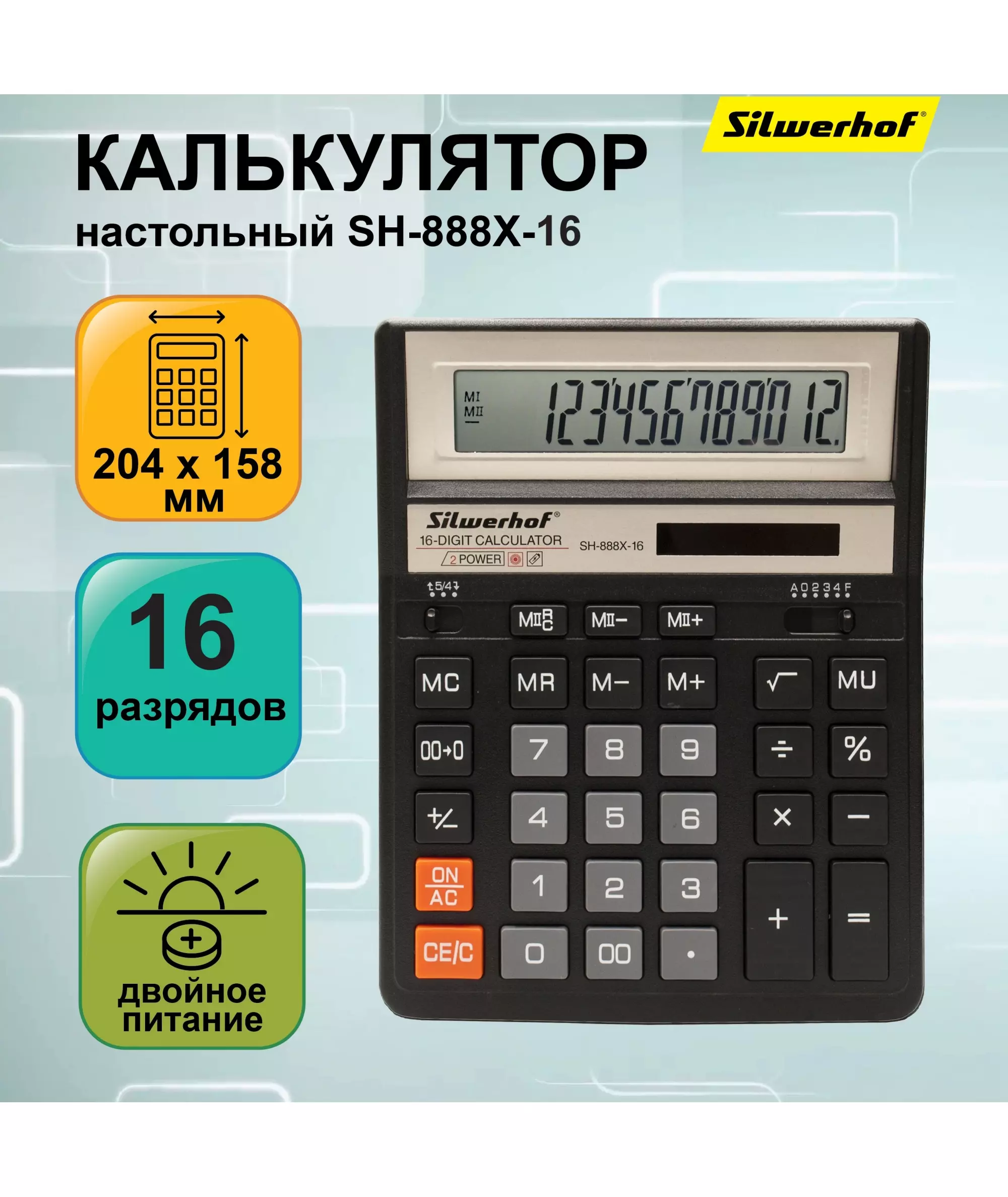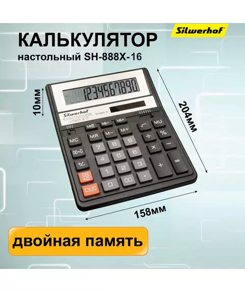 Калькулятор Silwerhof SH-888X-16 настольный черный 16-разр.
