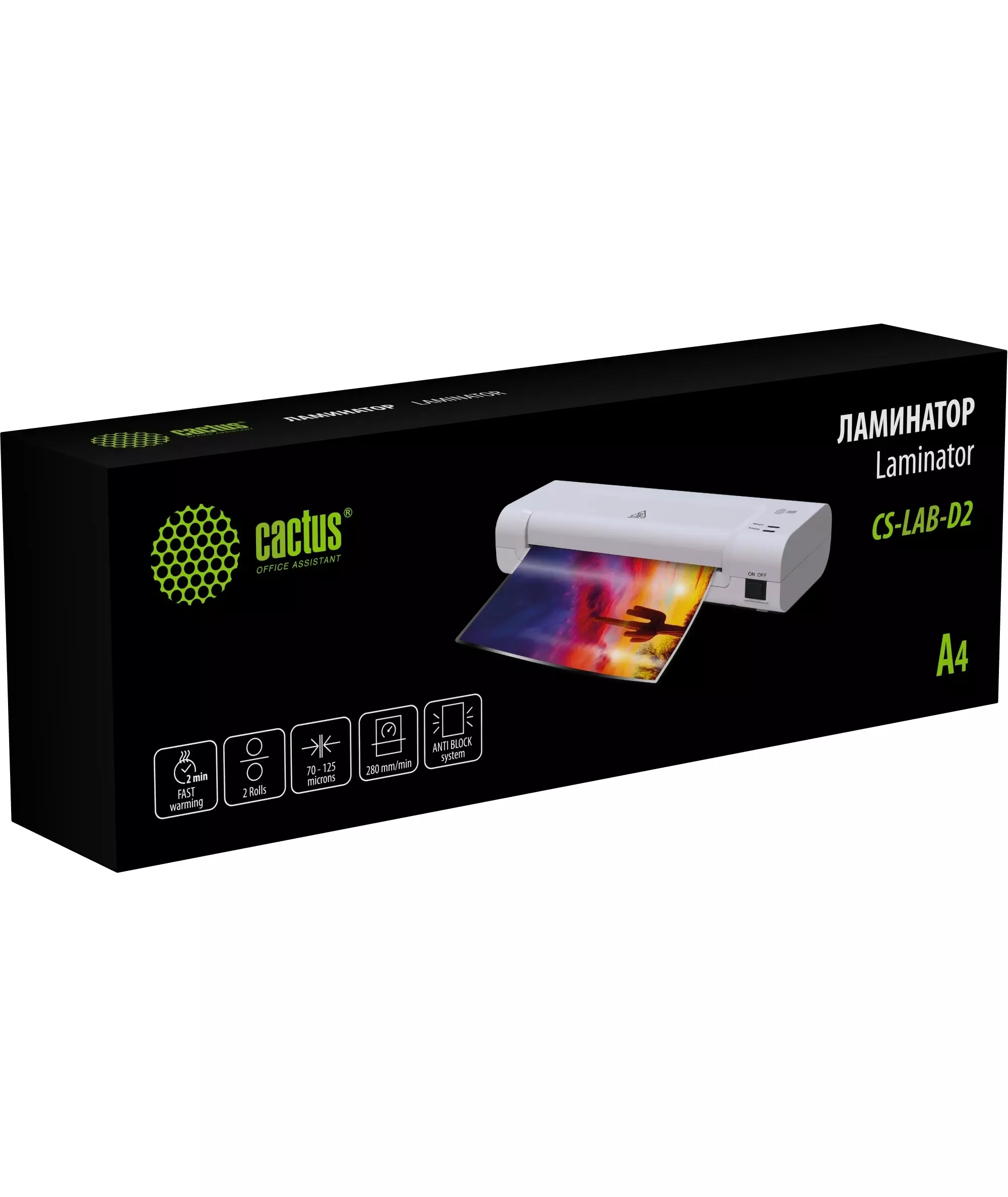 Ламинатор Cactus CS-LAB-D2 белый A4 (70-125мкм) 28см/мин (2вал.) лам.фото