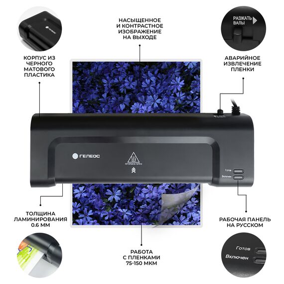 Ламинатор Гелеос ЛМ-А4К черный A4 (75-150мкм) 30см/мин (2вал.) лам.фото
