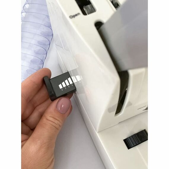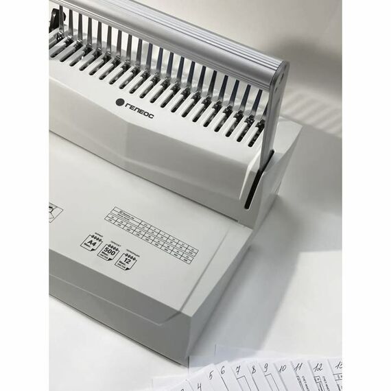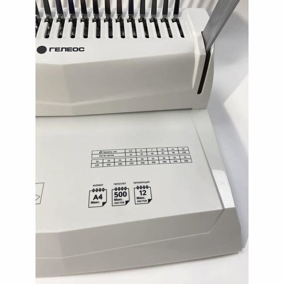 Регулировка глубины перфорации может переплетать как малые (до 100 листов), так и большие объемы бумажных блоков (до 400-500 листов). Также для удобства перфорации листов имеется ограничитель для бумаги формата А4 и А5.