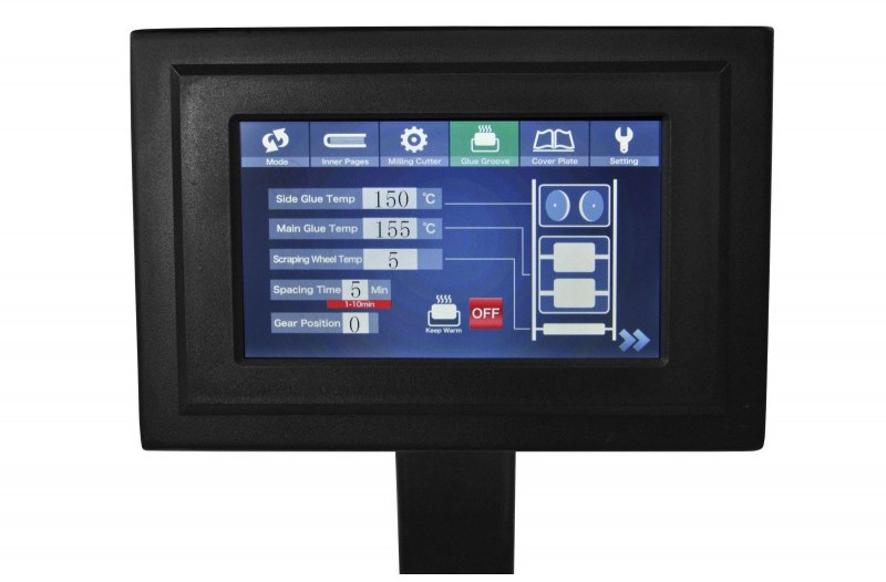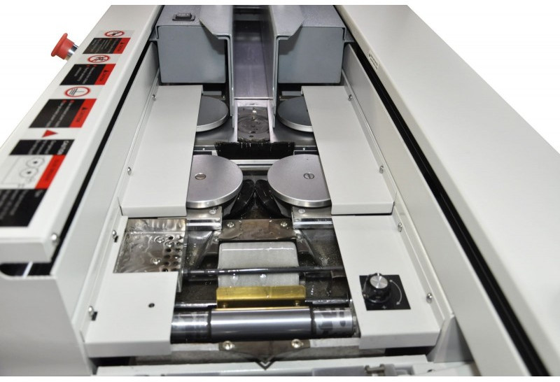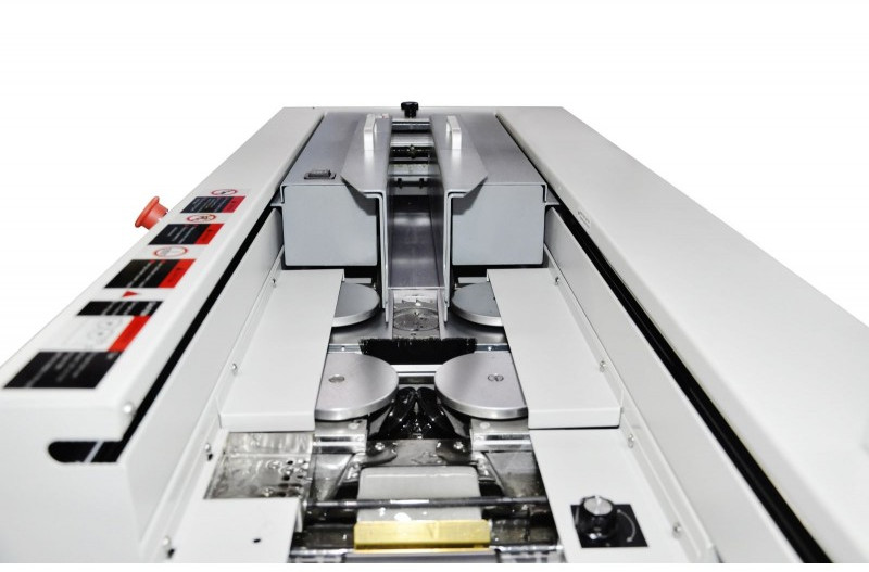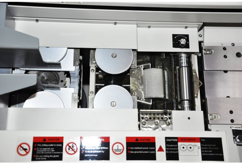- Ролики боковой проклейки имеют свою отдельную клеевую ванну, с отдельным нагревателем, термостатом, датчиком температуры. Благодаря этому вы можете использовать разные типы клеев с разной рабочей температурой для проклейки корешка и боковой проклейки;