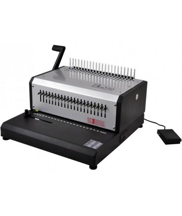 Переплетная машина на пластиковую пружину от компании Rayson. Мощный брошюратор с электрическим приводом механизма перфорации бумаги и напольной педалью перфорации, с помощью которой можно переплести до 500 листов. E-BIND 30 часто покупают типографии и офисы со средним и большим объемом работ.