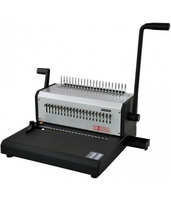 Надежная модель брошюратора с удлиненной станиной (для устойчивости) и двумя рукояткими для одновременной перфорации и брошюровки, которая может переплести до 500 листов бумаги. Отлично подходит для компаний и типографий со средним и большим объемом работ.