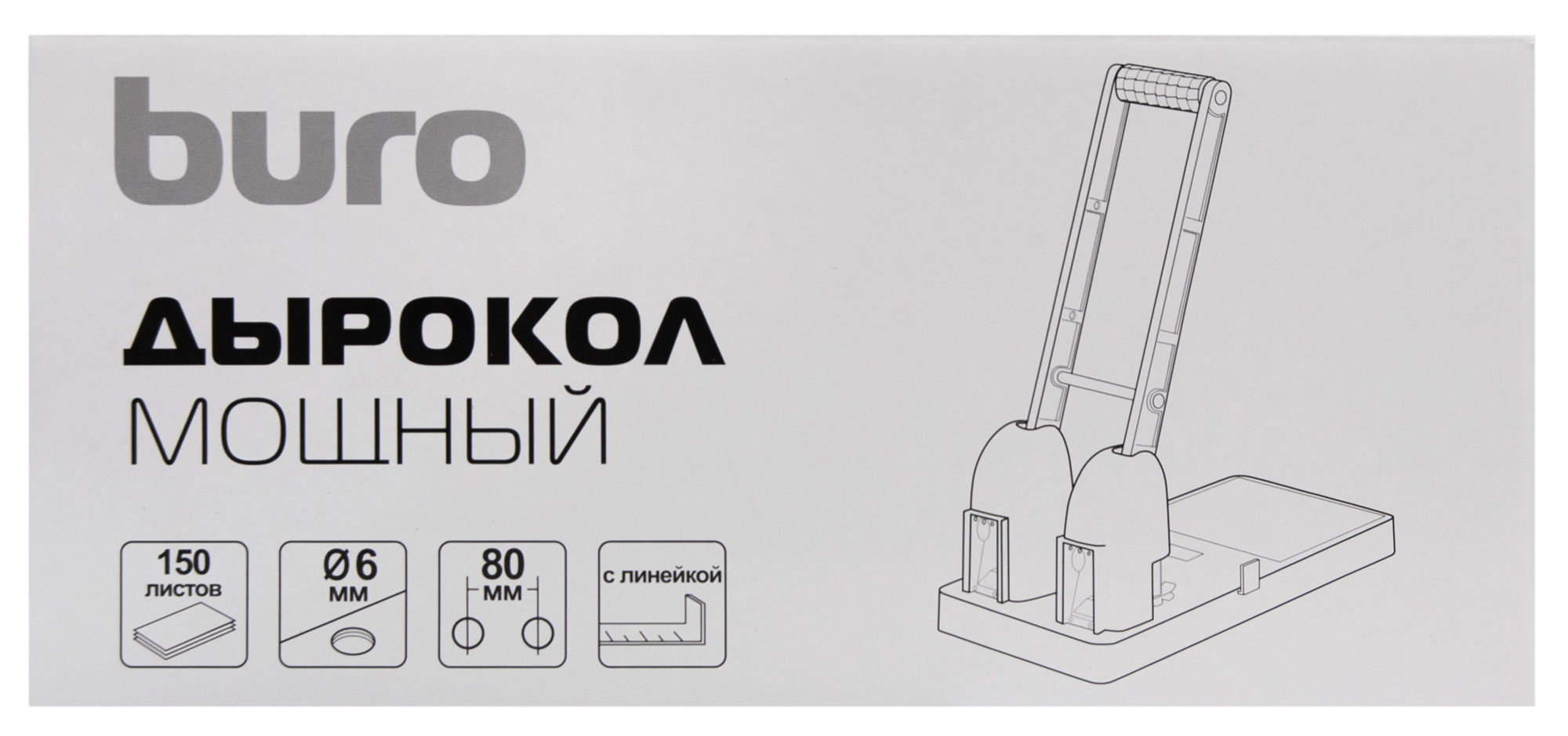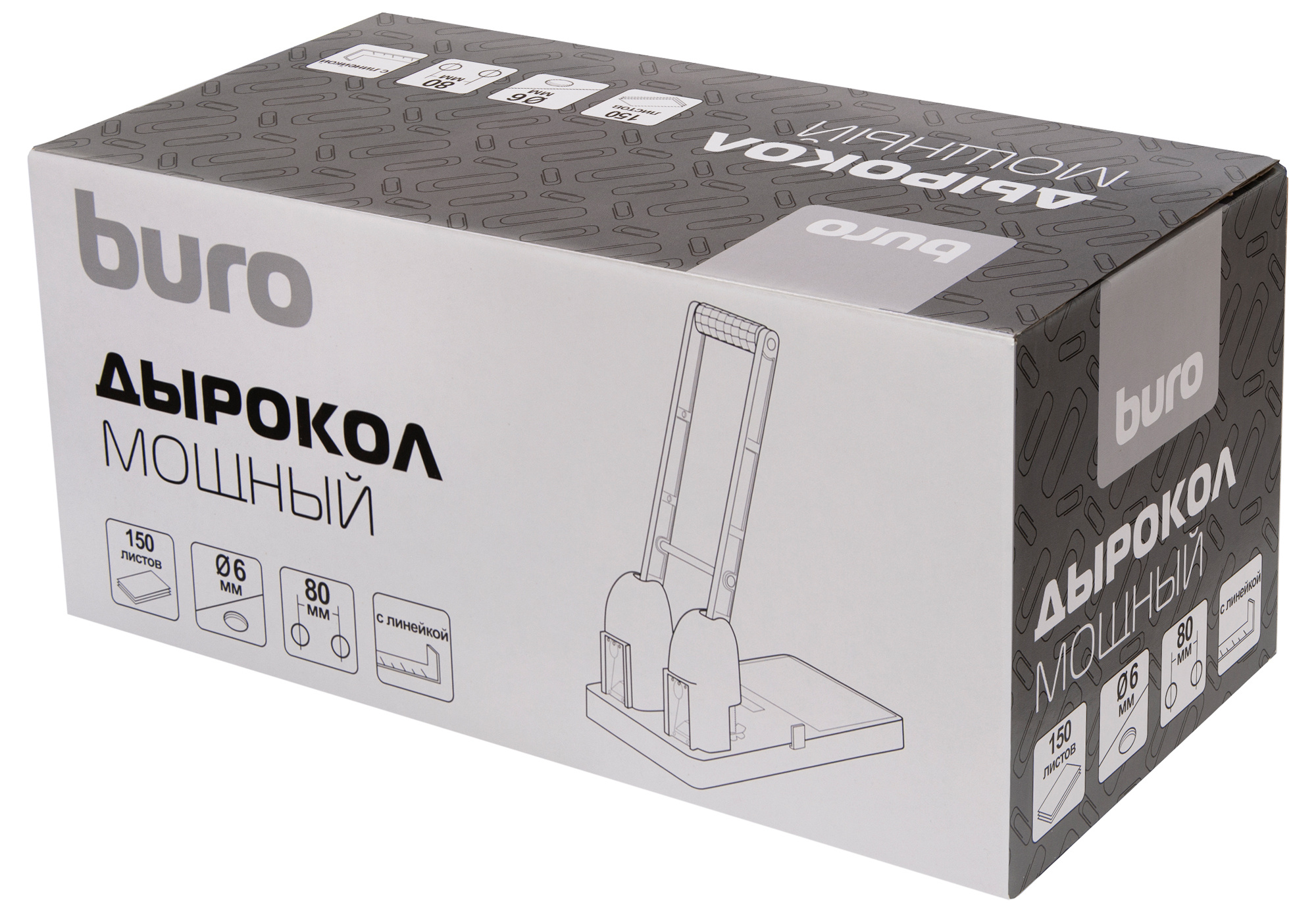 Дырокол BURO Force макс. 150лист. пластик черный отв. 2 с линейкой