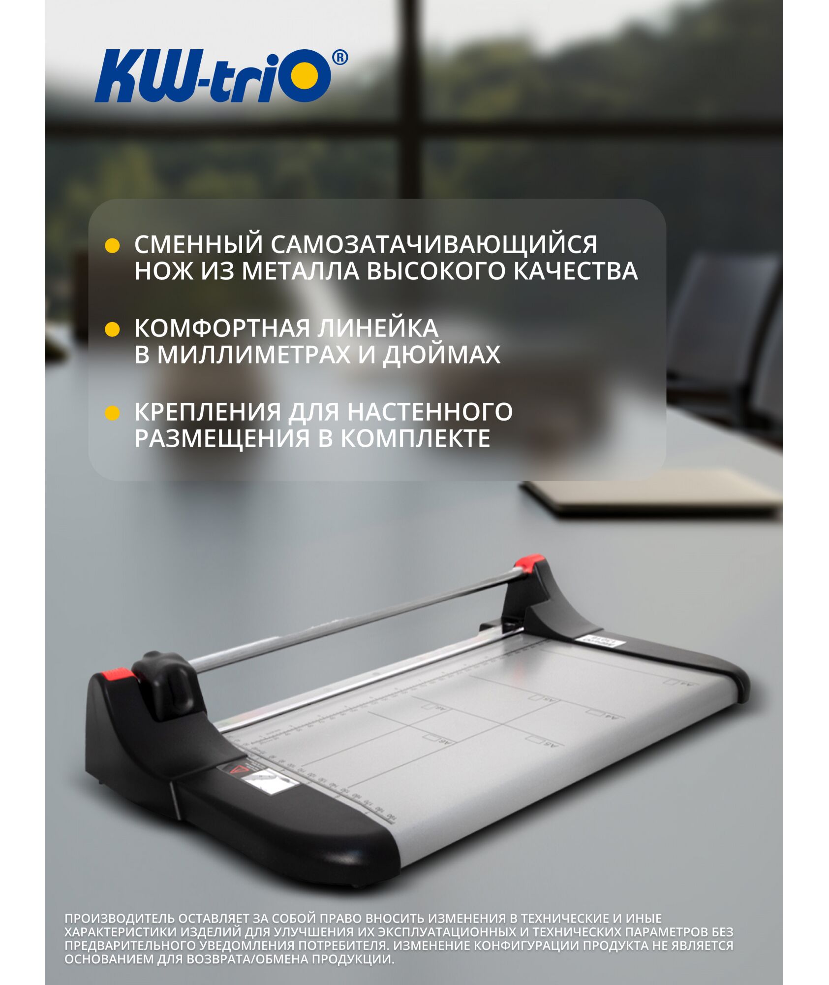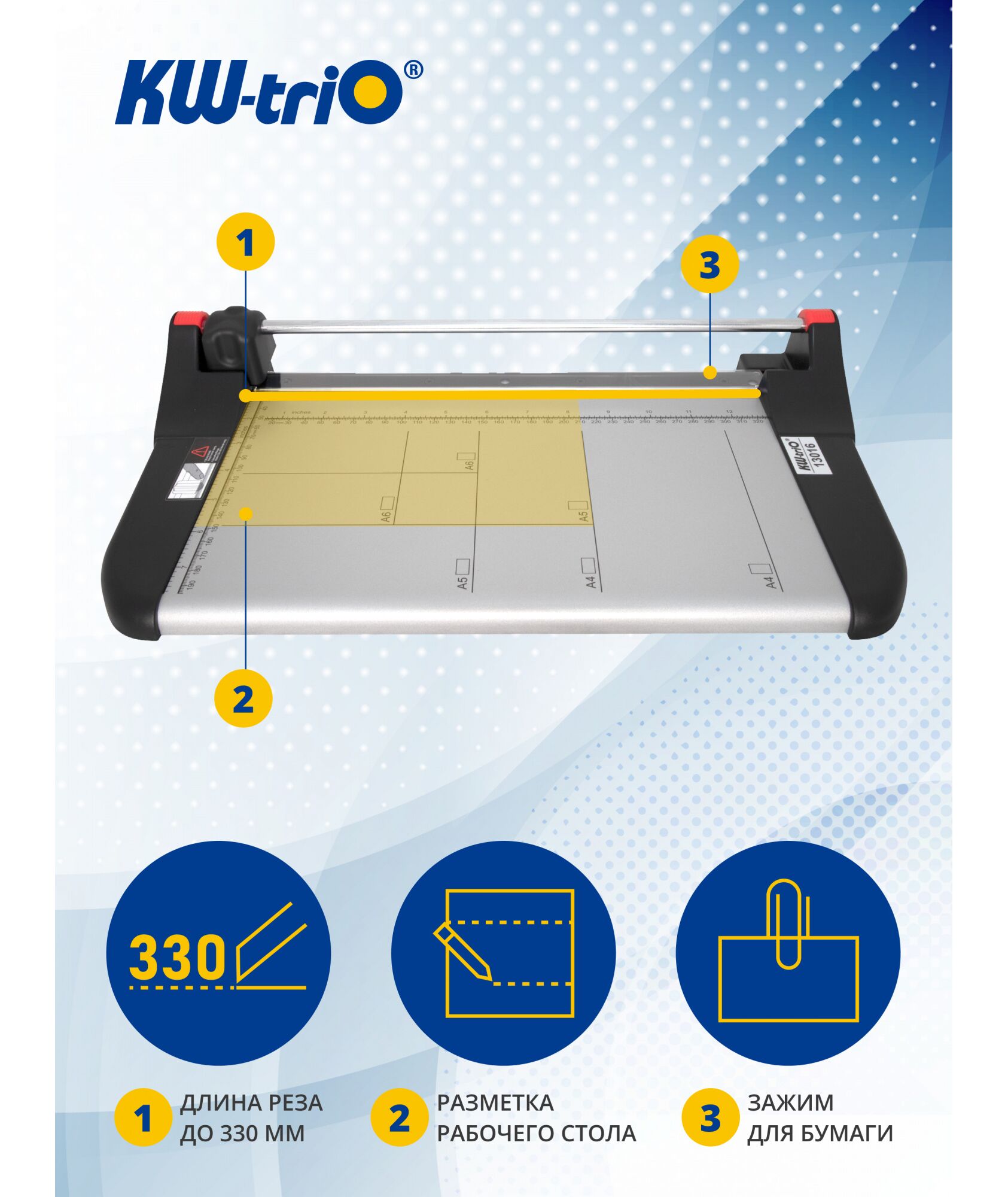 Резак дисковый KW-triO 3016 A4/10лист./330мм/автоприжим