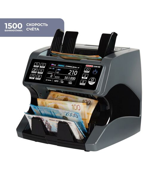 | Особенности | Мультивалютный с большим сенсорным дисплеем - 4,5 дюйма; CIS-сканер (проверка видимого образа 100% площади банкнот); Проверка подлинности по 4 МЧП; 3-х канальный датчик магнита-лучшая проверка магнита; Высокий эксплуатационный ресурс; Обработка большого объема наличности; Обновления ПО через USB. |