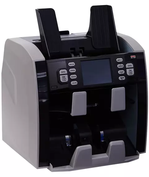 | Особенности | Сортировщик банкнот оснащен квантово-оптическим датчиком скотча, гарантирующим высокоточную проверку толщины на предмет склеенных банкнот. Позволяет сканировать, сравнивать и выгружать серийных номеров банкнот. Хранение в памяти сортировщика и возможность выгрузки результатов пересчета |