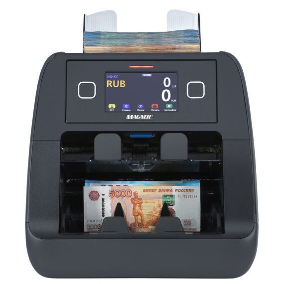 | Особенности | Определитель ветхости, установлено 7 валют, шторка, закрывающая карман выдачи, визуализация на дисплее причин отбраковки, экспорт данных на ПК и USB |