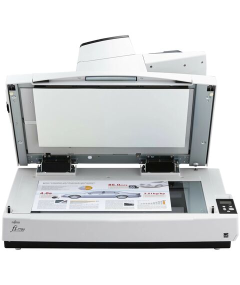 Профессиональный протяжной сканер формата A3 c планшетом Fujitsu fi-7700S подходит для больших объемов документов разных видов. Он обрабатывает документы формата A4 в альбомной ориентации со скоростью 75 страниц в минуту (200/300 точек на дюйм). Сканер подходит для непрерывного сканирования, так как одновременно в него можно загрузить до 300 листов.