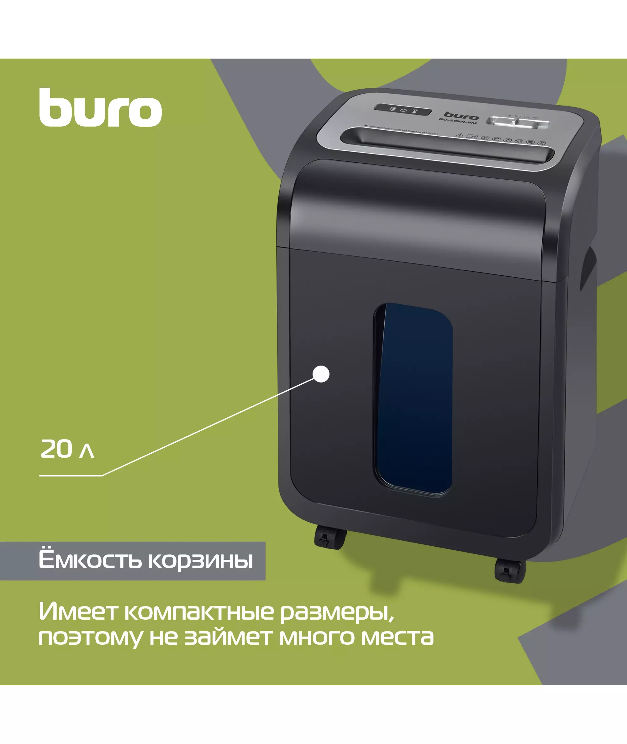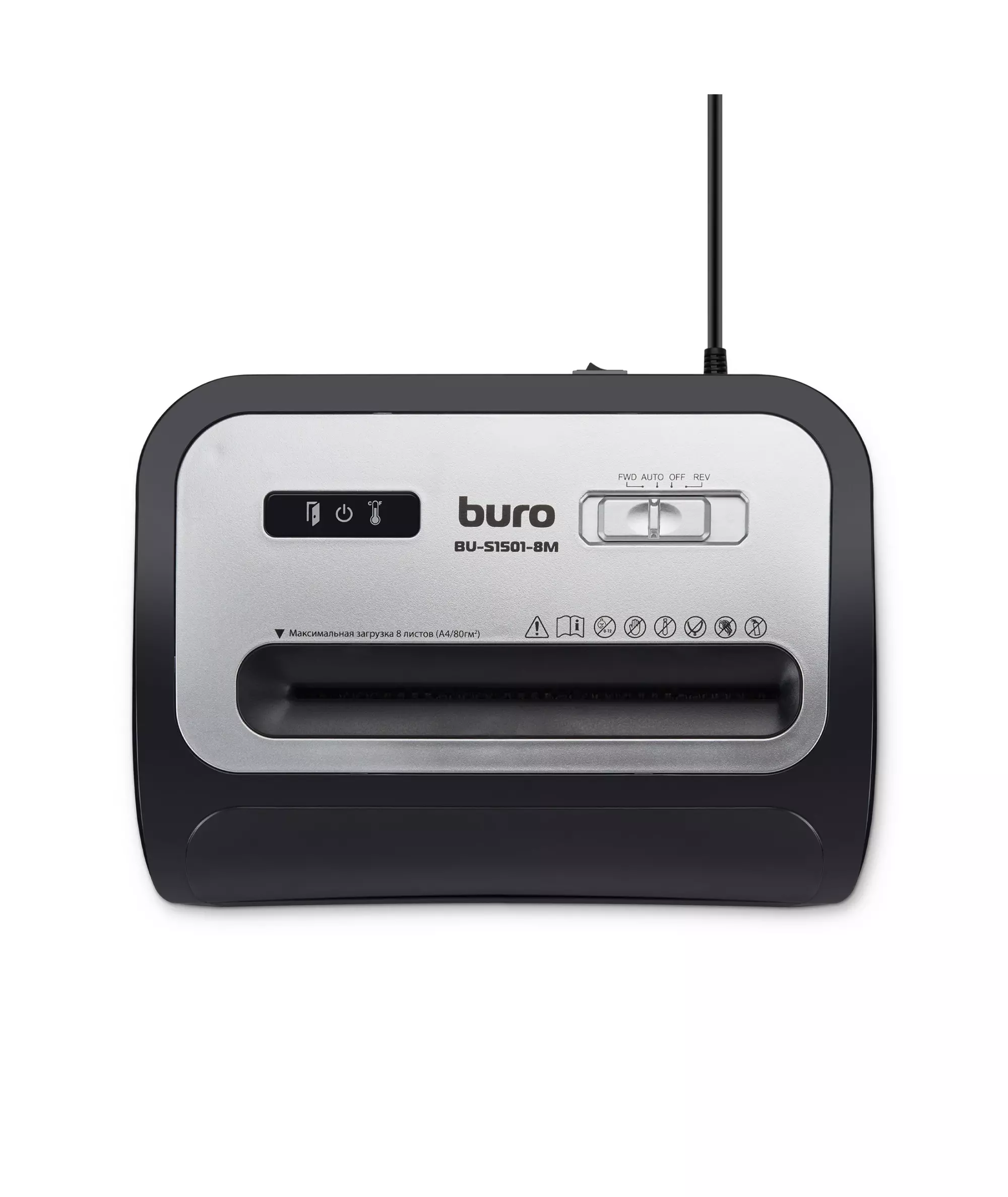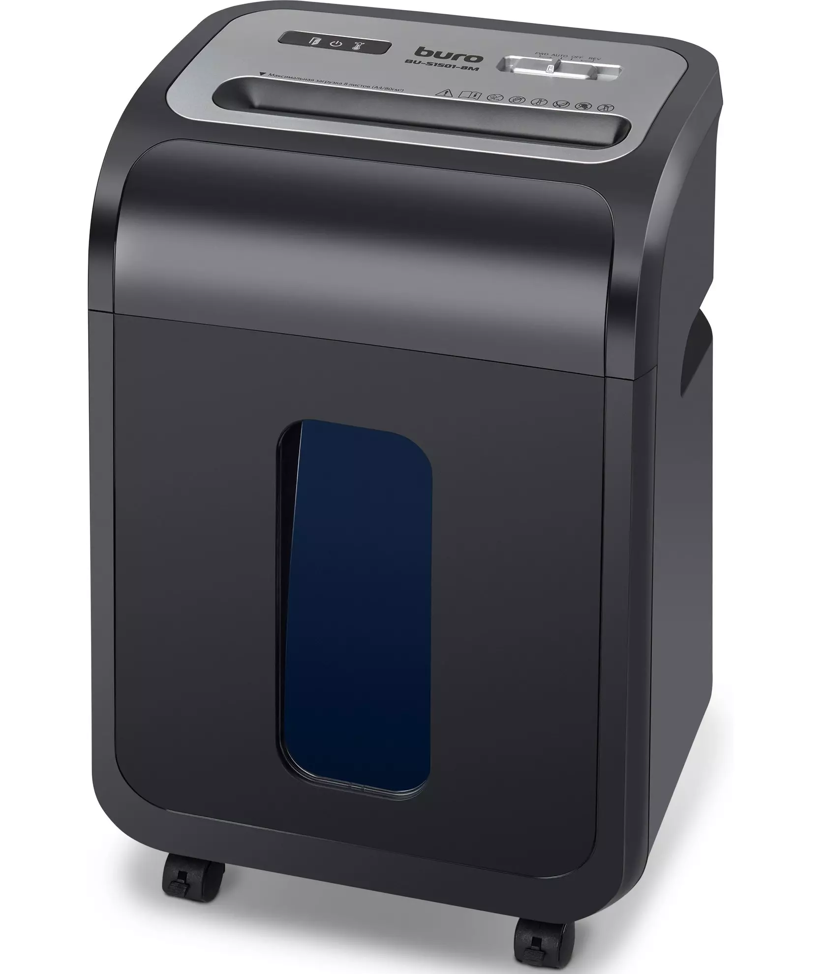Шредер BURO BU-S1501-8M Office черный (секр.P-5) фрагменты 8лист. 20лтр. скрепки скобы пл.карты