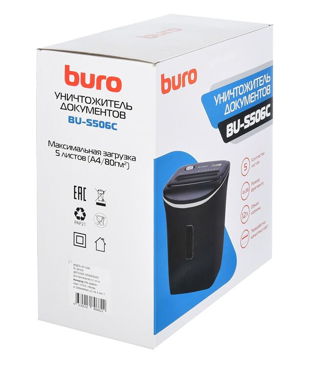 Шредер BURO BU-S506C Home черный (секр.P-4) фрагменты 5лист. 12лтр. пл.карты