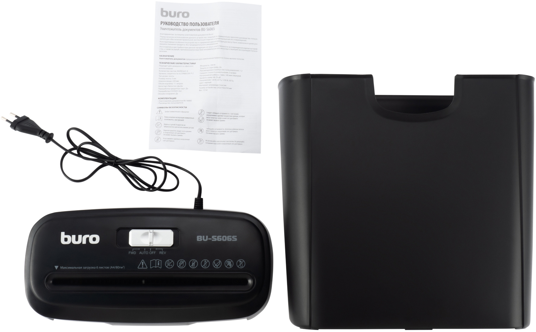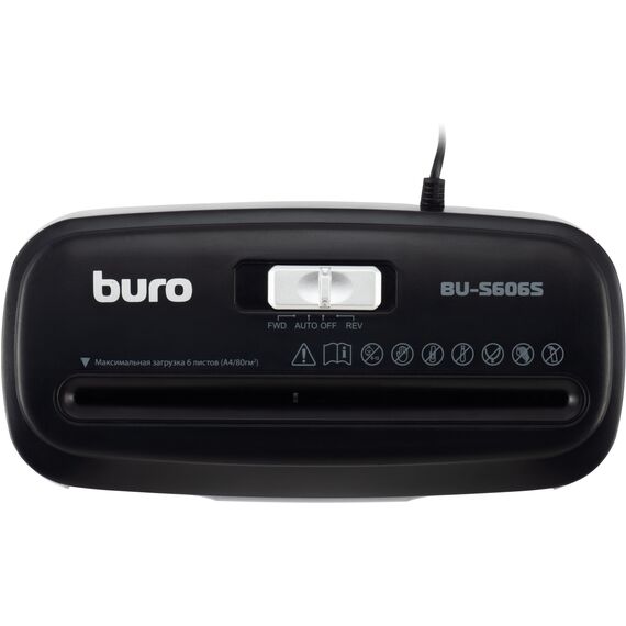Шредер BURO BU-S606S черный (секр.Р-2) ленты 6лист. 11лтр. пл.карты