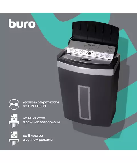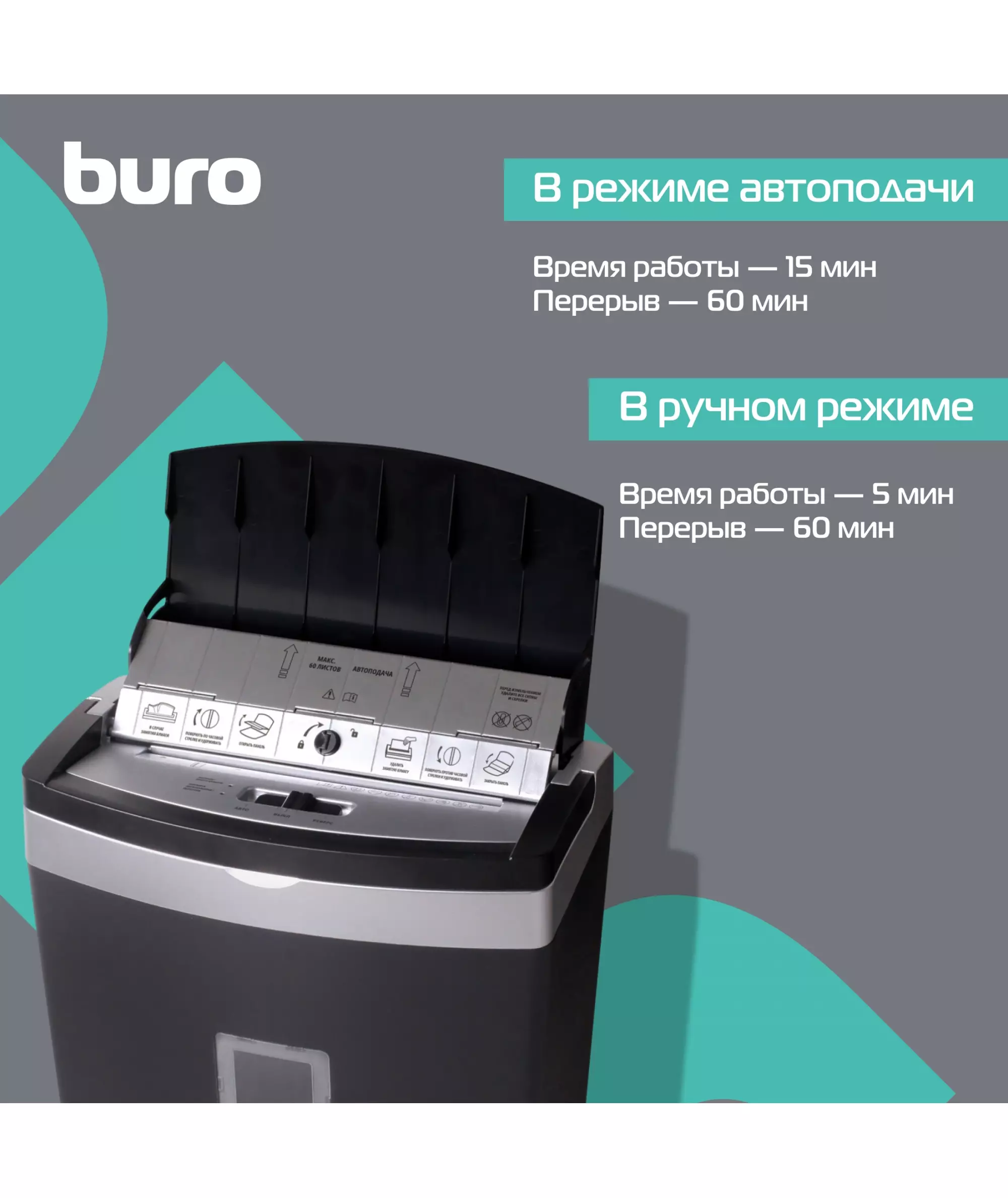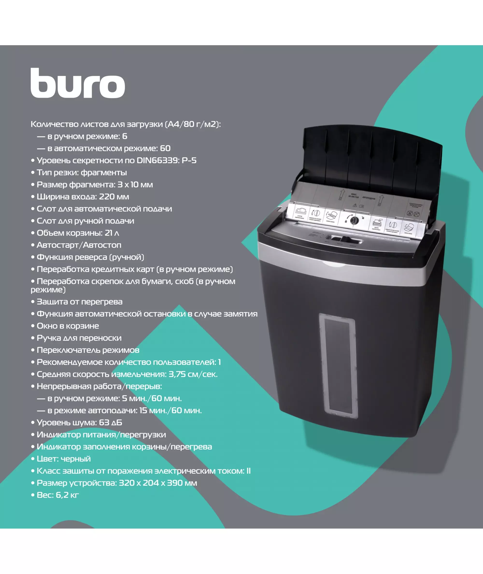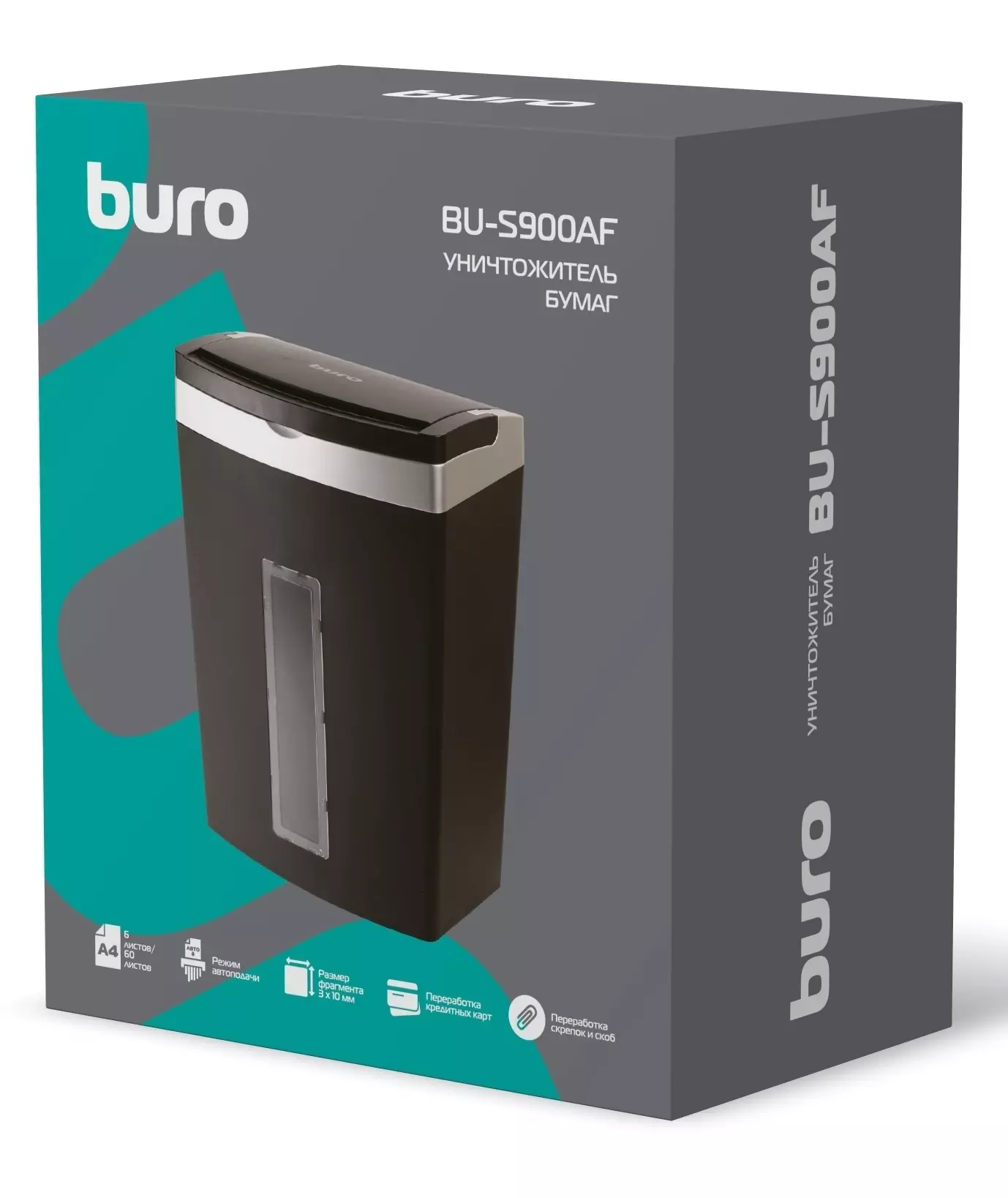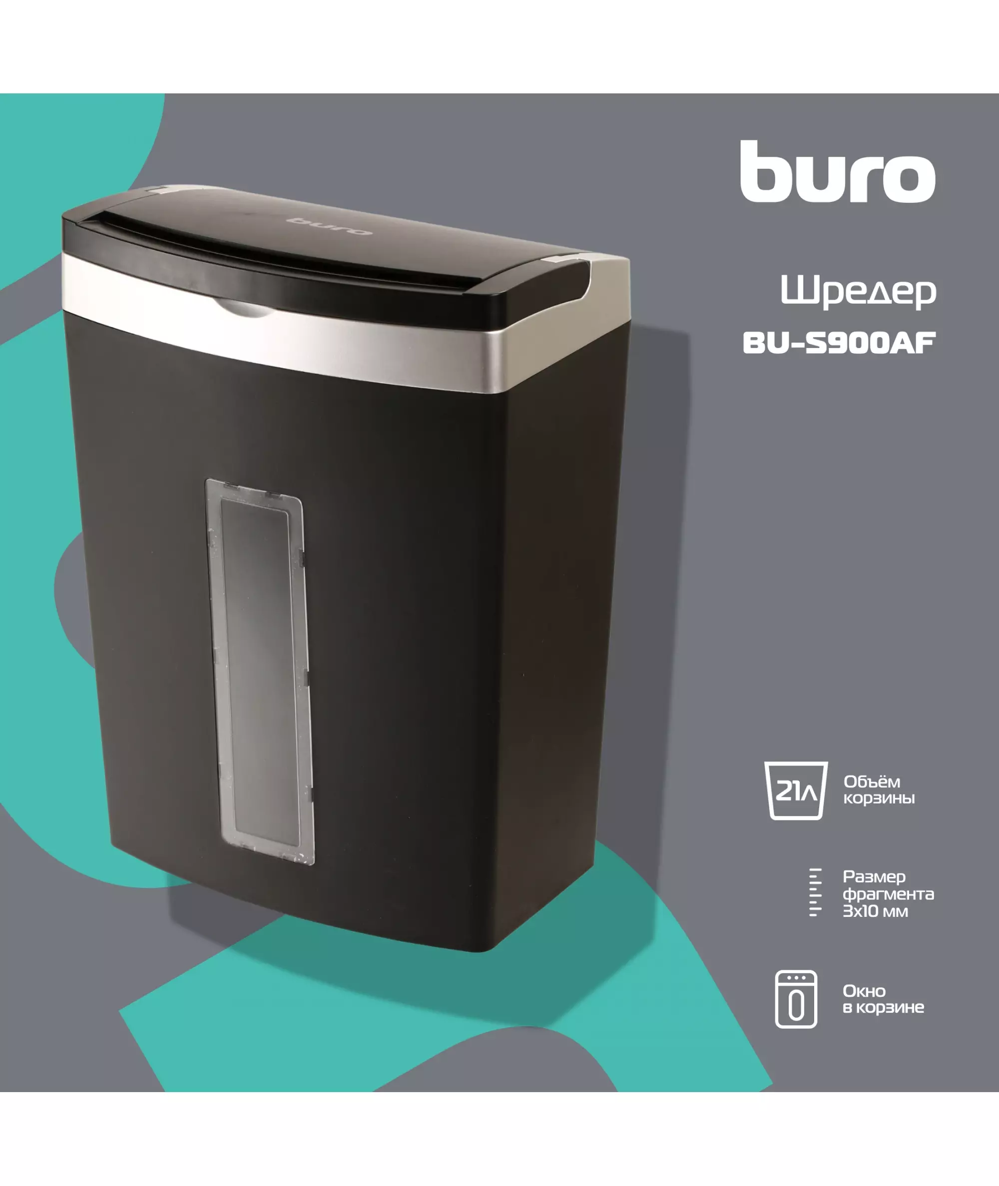 Шредер BURO BU-S900AF Office черный с автоподачей (секр.P-5) фрагменты 60лист. 21лтр. скрепки скобы пл.карты