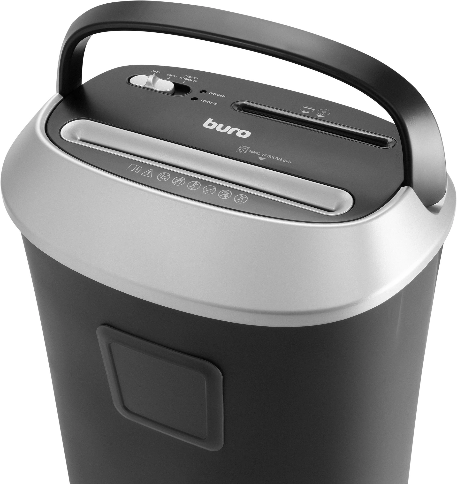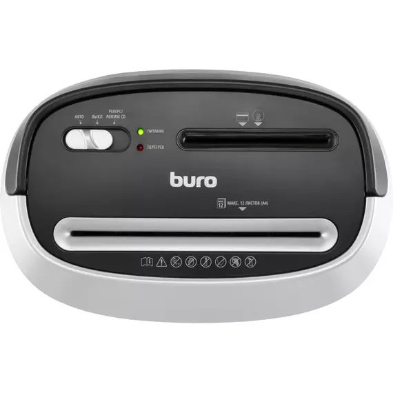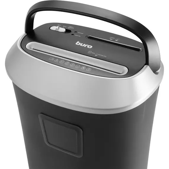 Шредер Buro Office BU-S1201 черный/серебристый с автоподачей (секр.P-4) фрагменты 12лист. 25лтр. скрепки скобы пл.карты CD