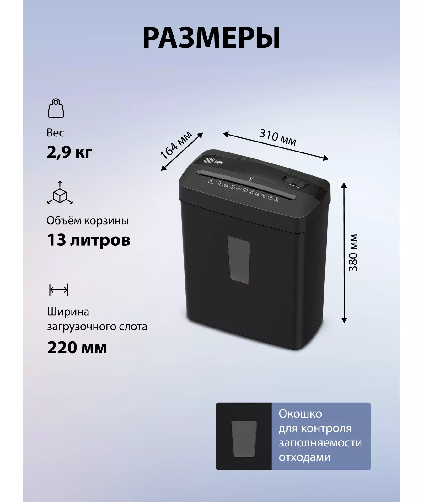 | Емкость корзины | 13 л |