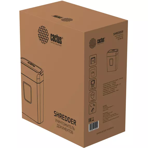 Шредер Cactus CS-SH-C4 белый секр.P-4 фрагменты 8лист 13лтр скрепки скобы пл.карты