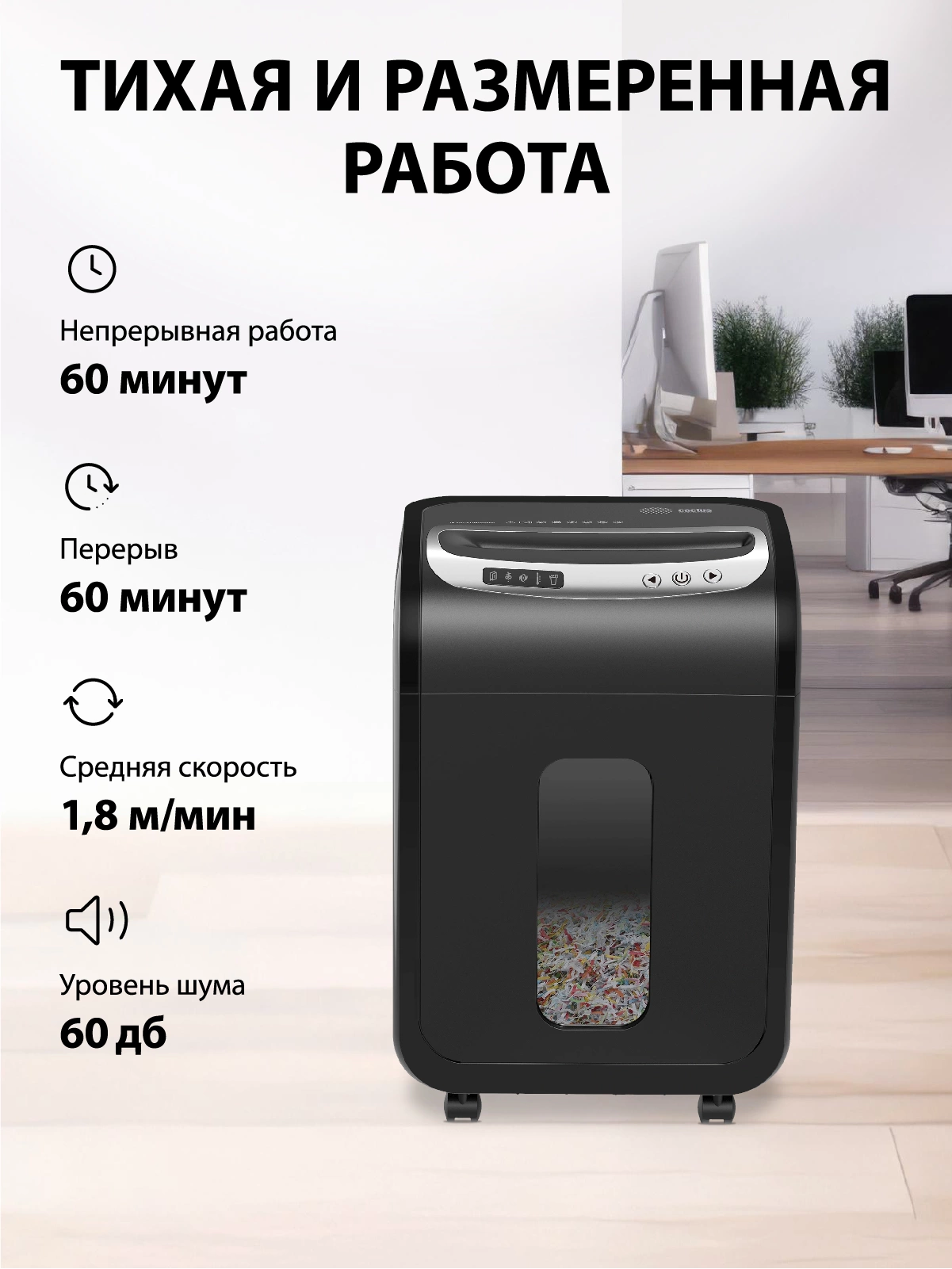 Шредер Cactus CS-SH-G6 черный/серебристый (секр.P-5) фрагменты 16лист. 30лтр. скрепки скобы пл.карты CD