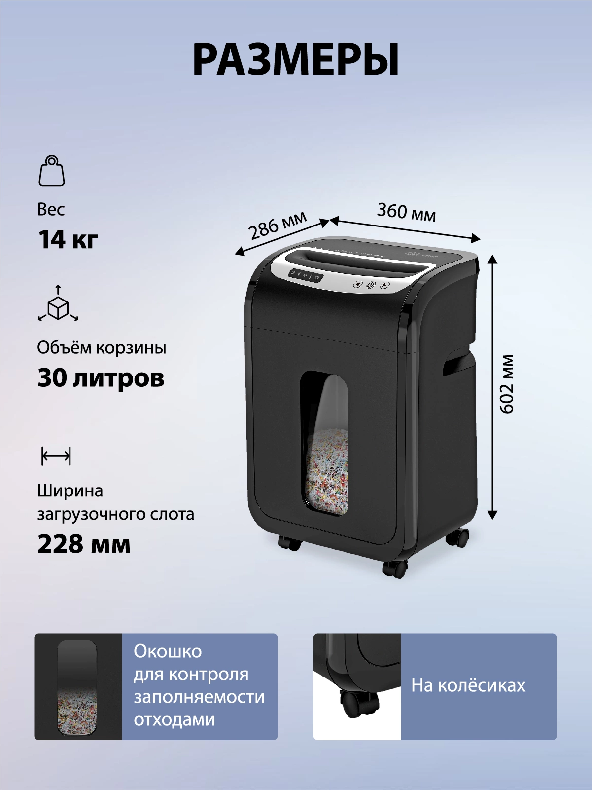 | Емкость корзины | 30 л |