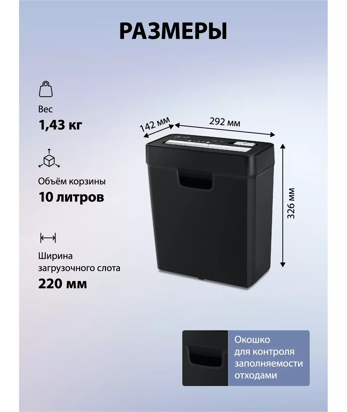 | Емкость корзины | 10 л |