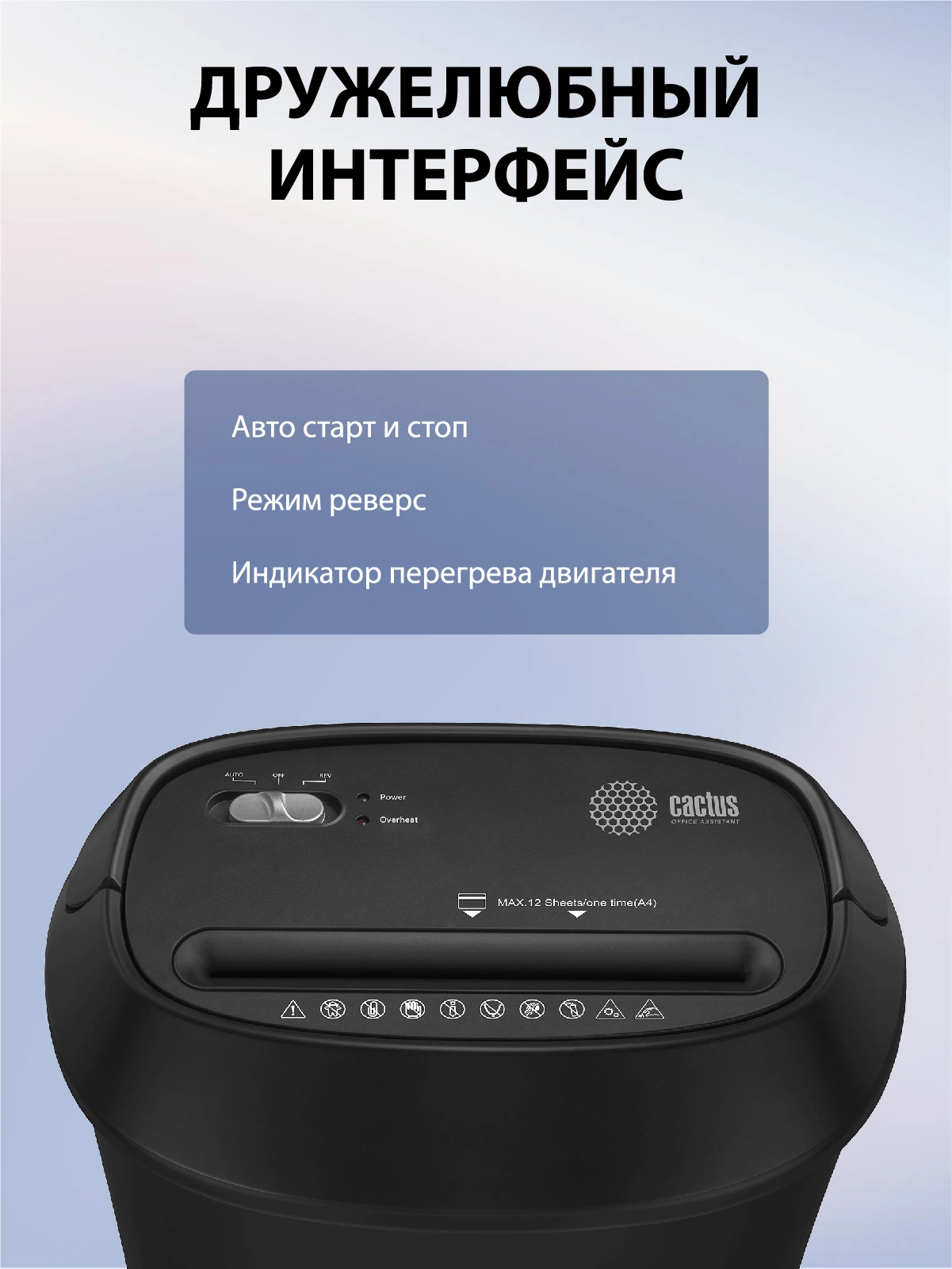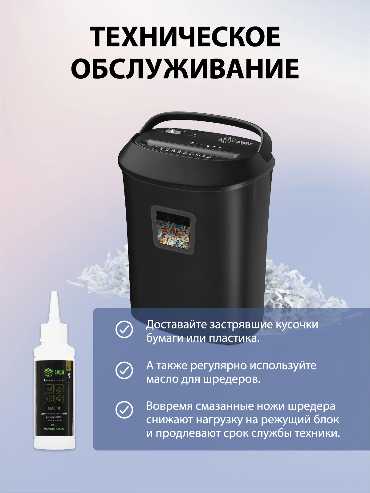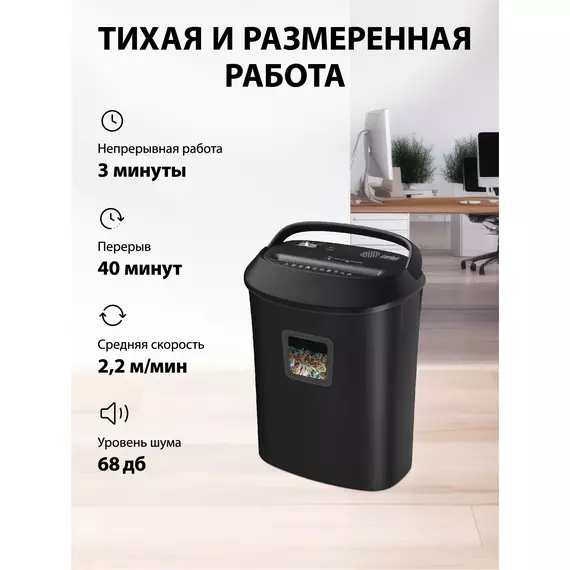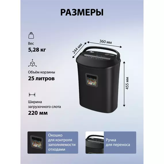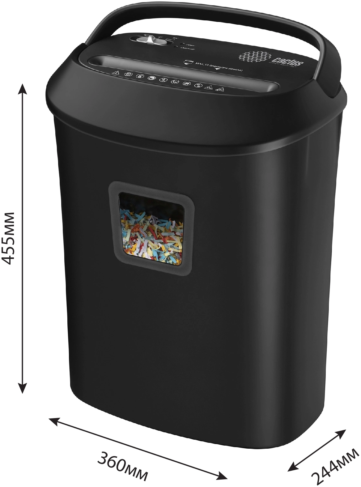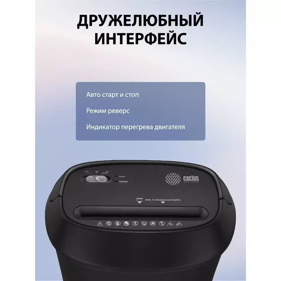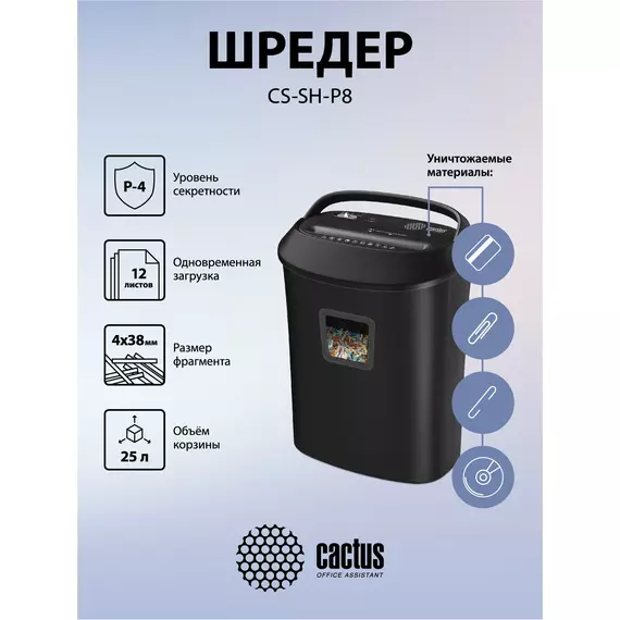 Шредер Cactus CS-SH-P8 черный (секр.P-4) фрагменты 12лист. 25лтр. скрепки скобы пл.карты CD