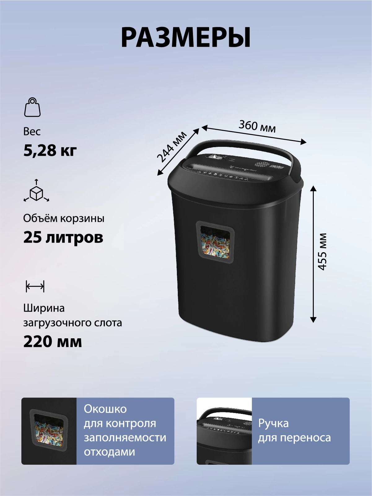 | Емкость корзины | 25 л |