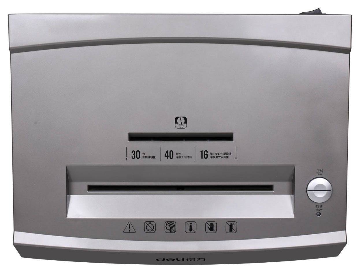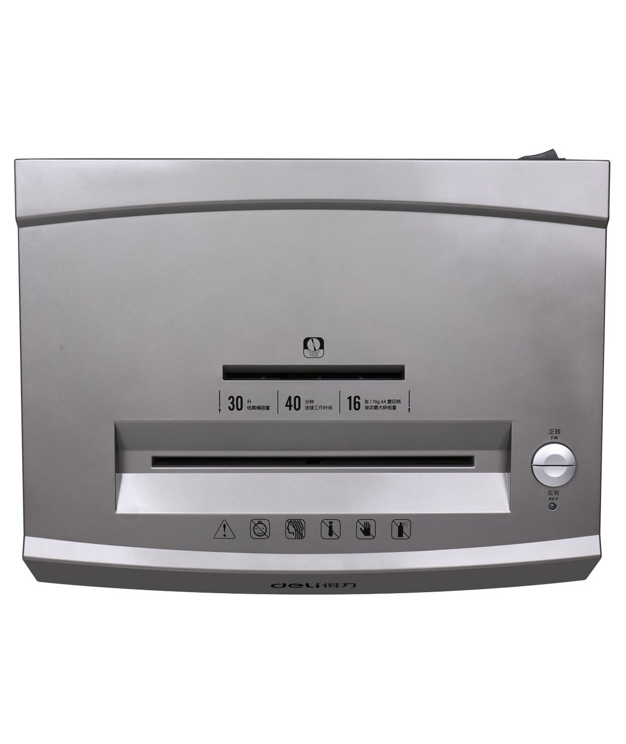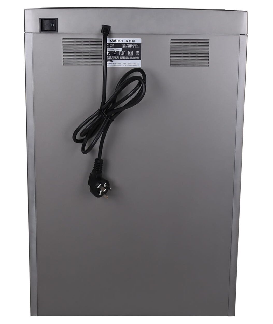 Шредер Deli 9906 серый с автоподачей (секр.P-5) фрагменты 16лист. 30лтр. скрепки скобы пл.карты CD
