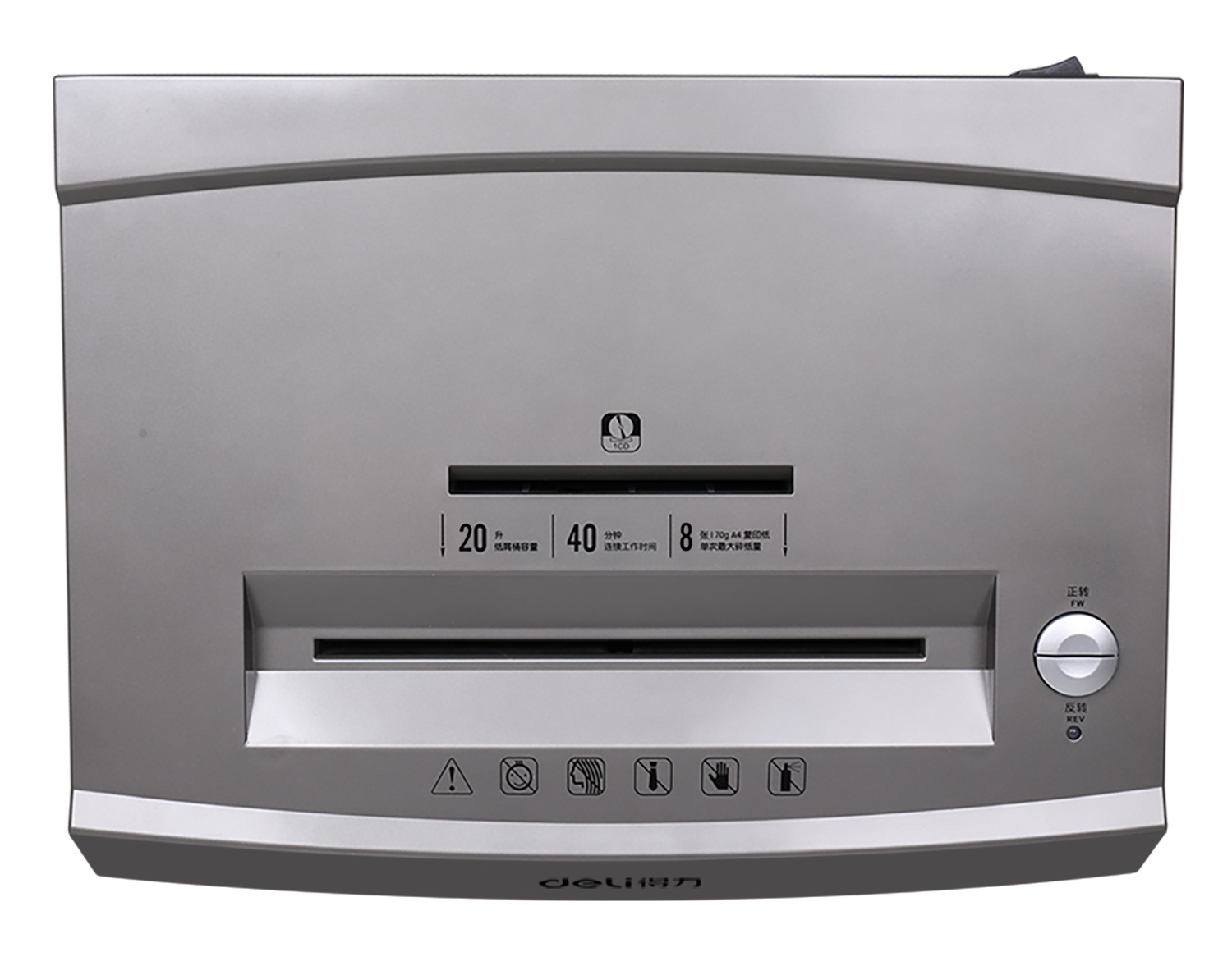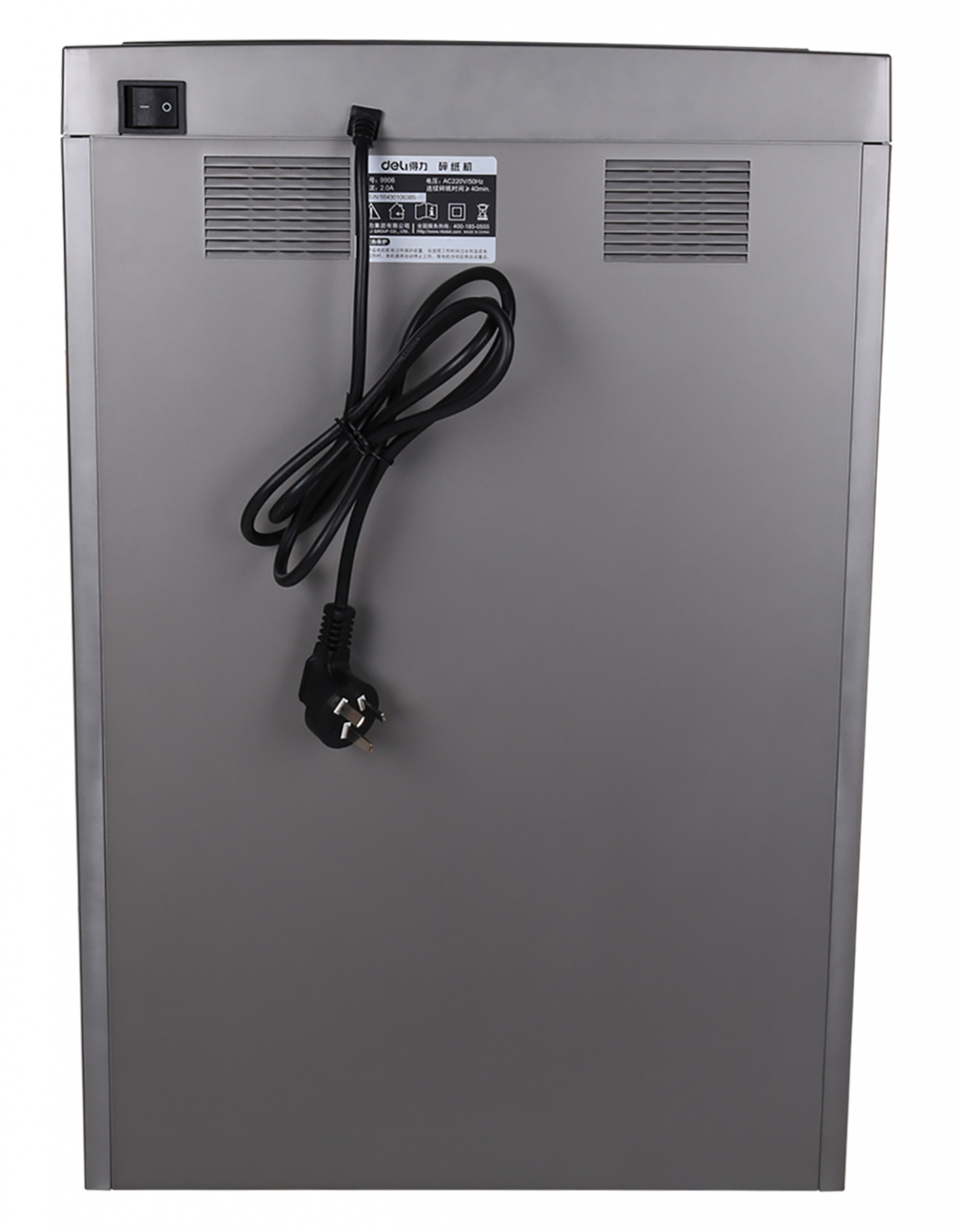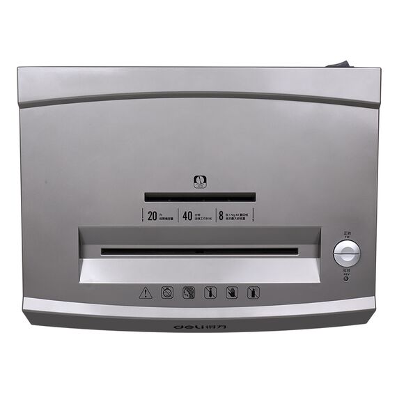 Шредер Deli 9907 серебристый с автоподачей (секр.P-4) фрагменты 8лист. 20лтр. скрепки скобы пл.карты CD