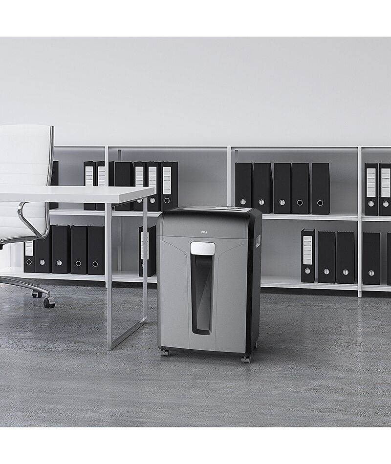 Шредер Deli E14400 черный (секр.P-4) фрагменты 16лист. 31лтр. скрепки скобы пл.карты CD
