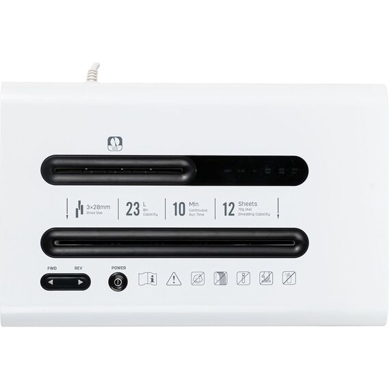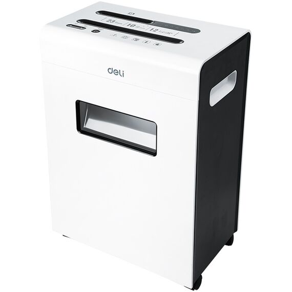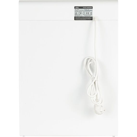 Шредер Deli E9903-EU белый/черный (секр.P-4) фрагменты 12лист. 23лтр. скрепки скобы пл.карты CD