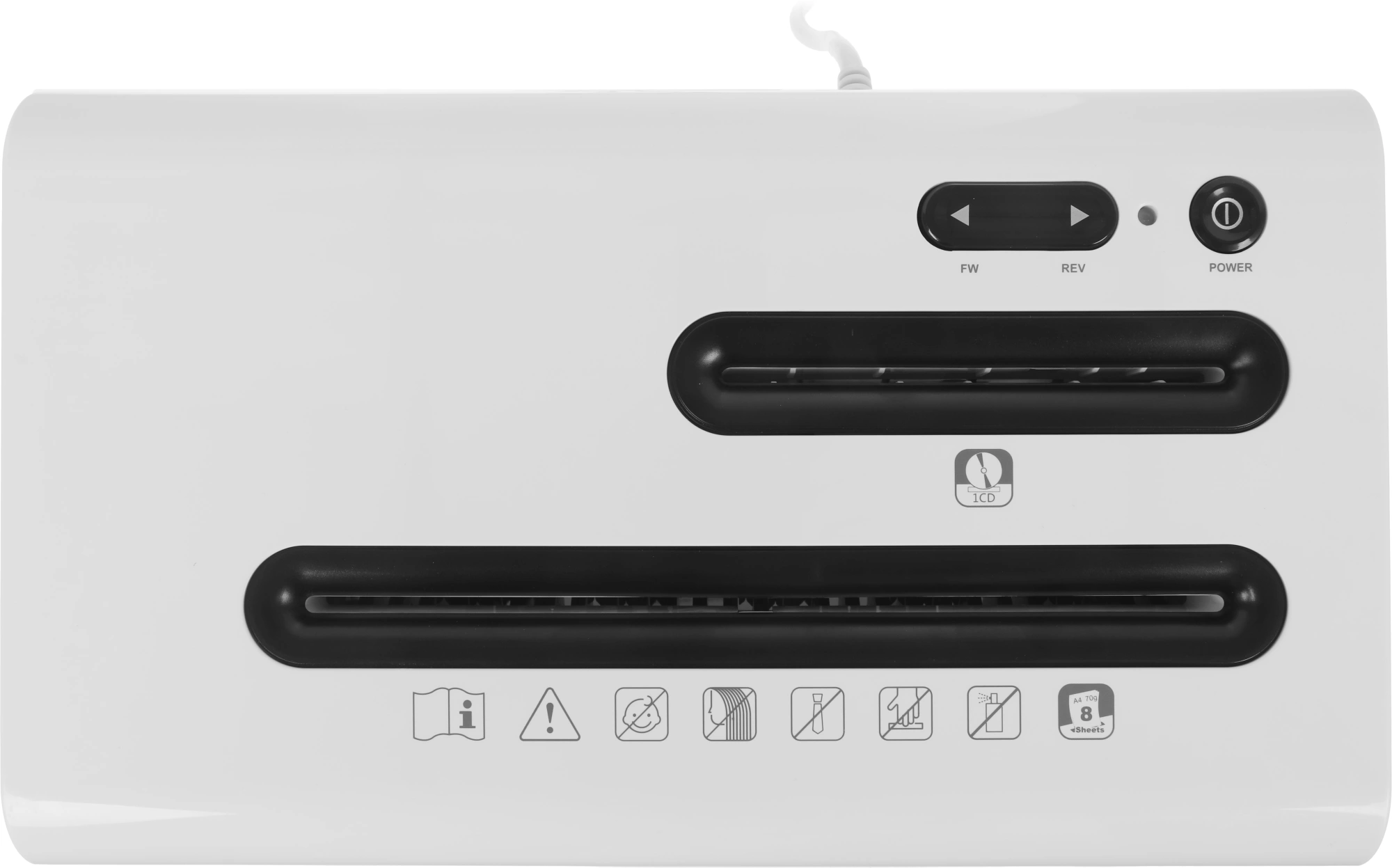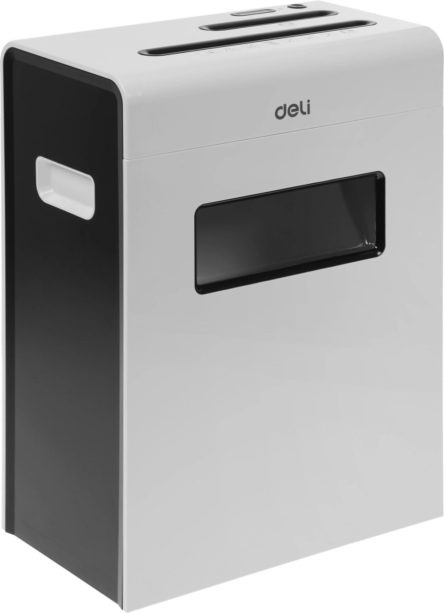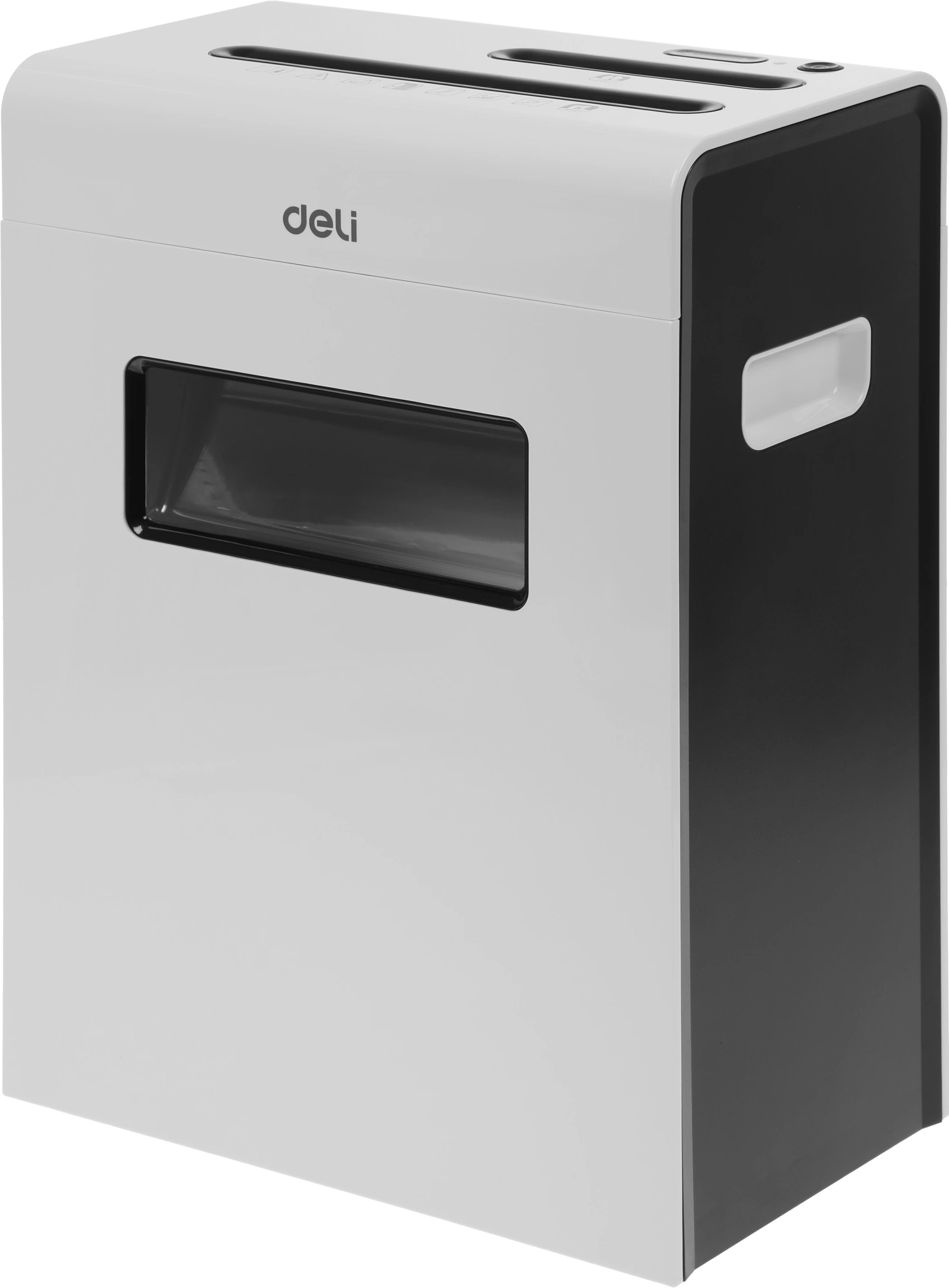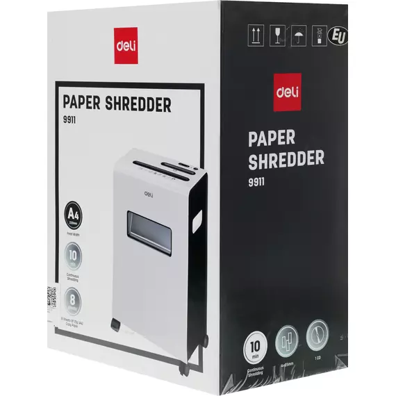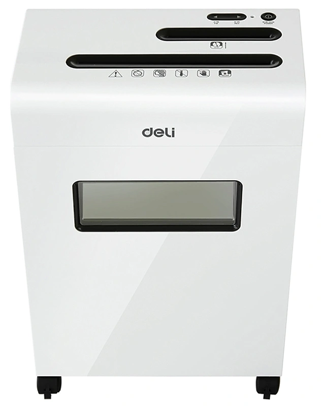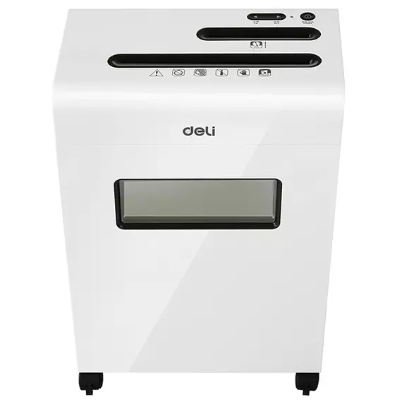 Шредер Deli E9911-EU белый (секр.P-4) фрагменты 8лист. 16лтр. скрепки скобы пл.карты CD
