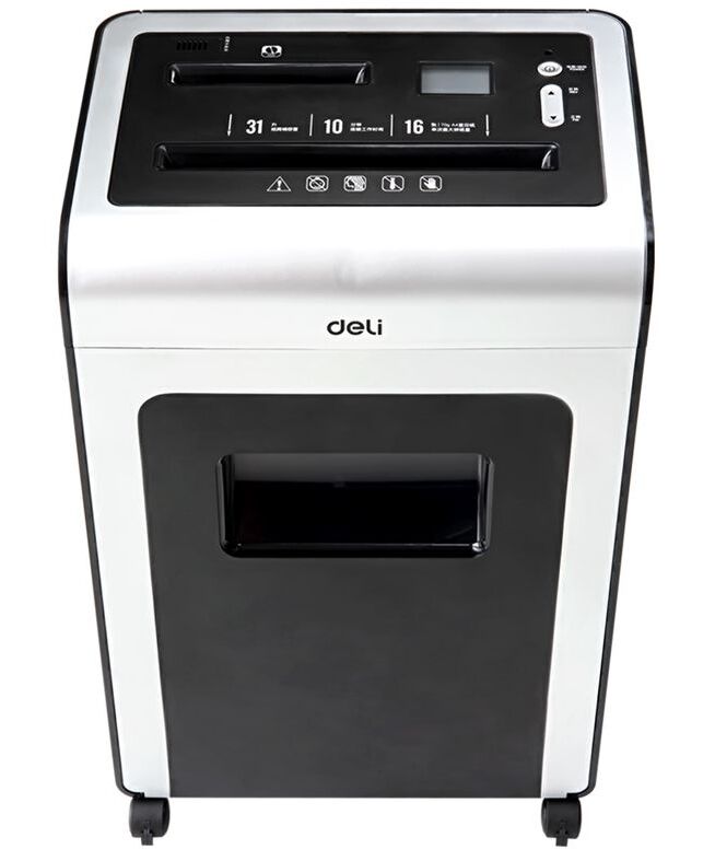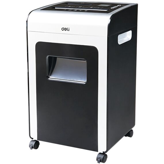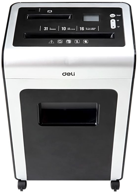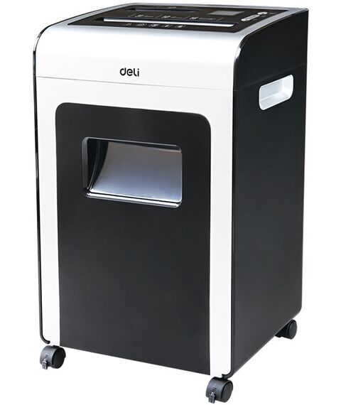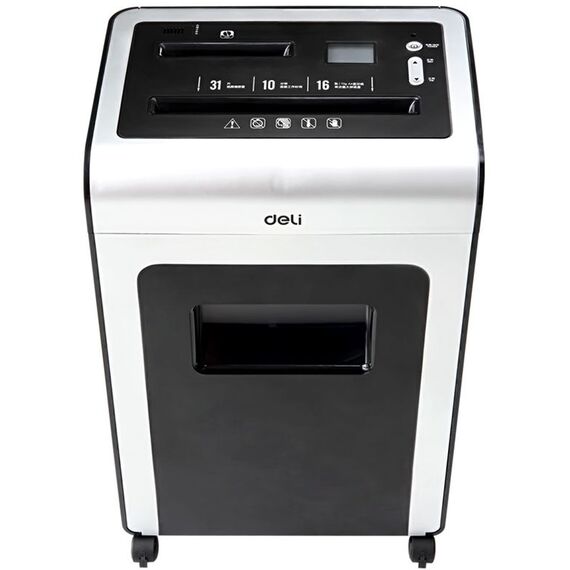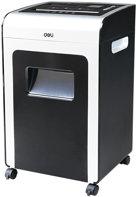 Шредер Deli E9917-EU черный/белый с автоподачей (секр.P-4) фрагменты 16лист. 31лтр. скрепки скобы пл.карты CD