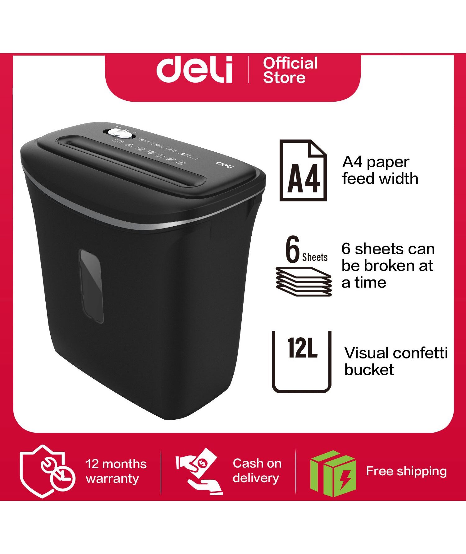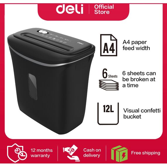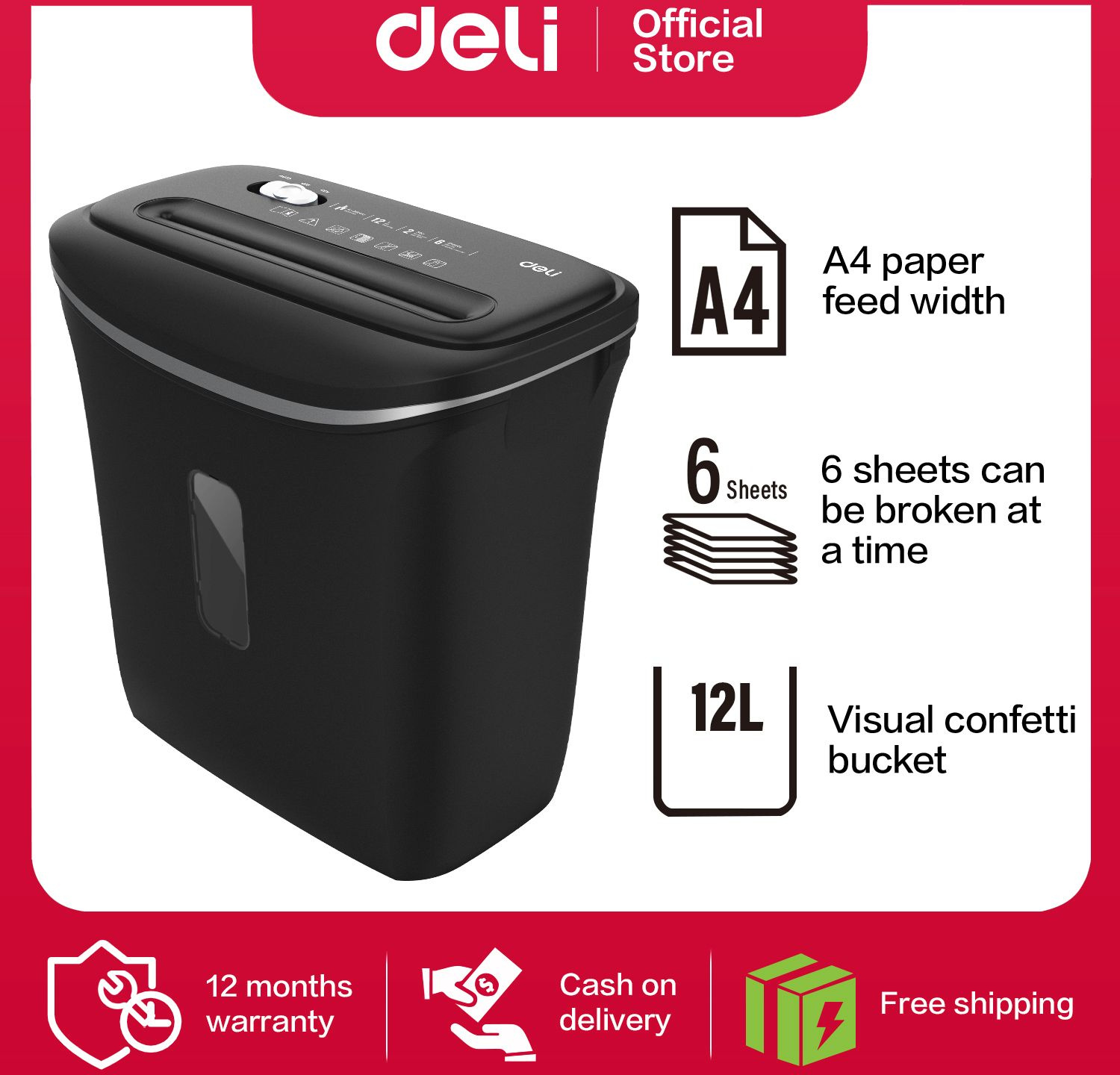 Шредер Deli E9945 черный (секр.P-4) фрагменты 6лист. 12лтр. скобы пл.карты