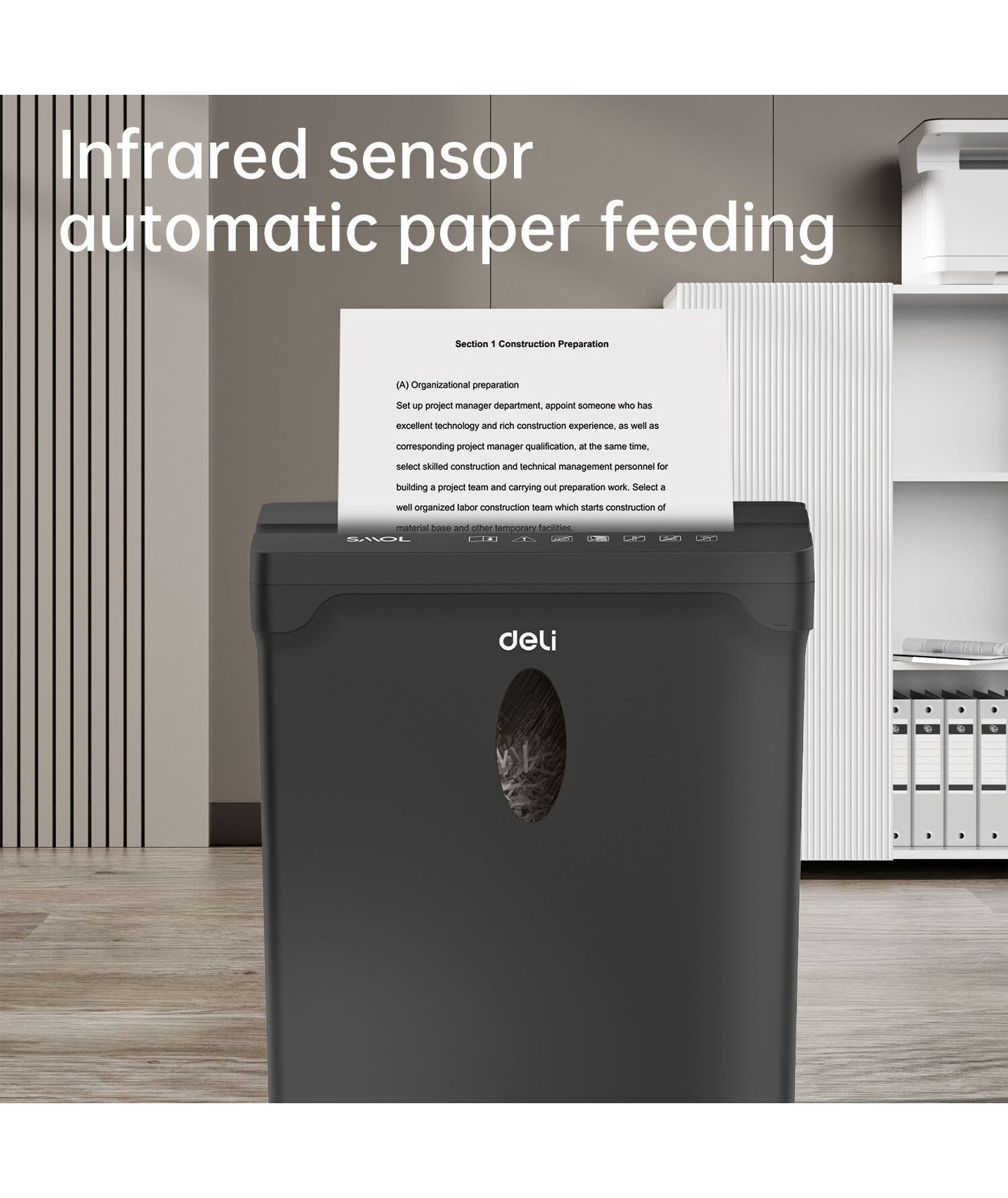 Шредер Deli ET014 черный с автоподачей (секр.P-4) фрагменты 5лист. 10лтр. пл.карты