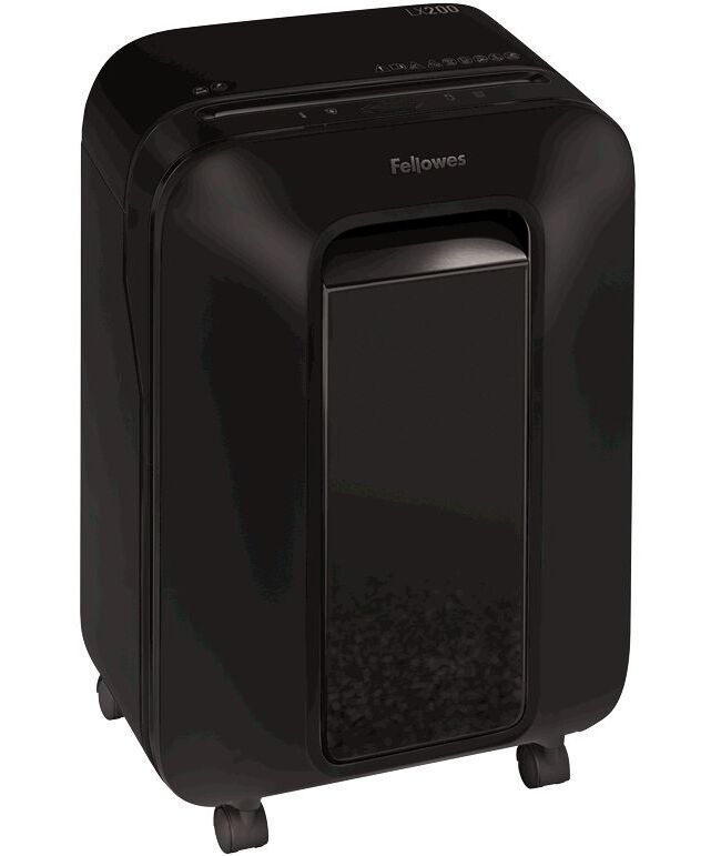 Шредер Fellowes PowerShred LX200 черный (секр.P-4) фрагменты 12лист. 22лтр. скрепки скобы пл.карты [FS-55022]
