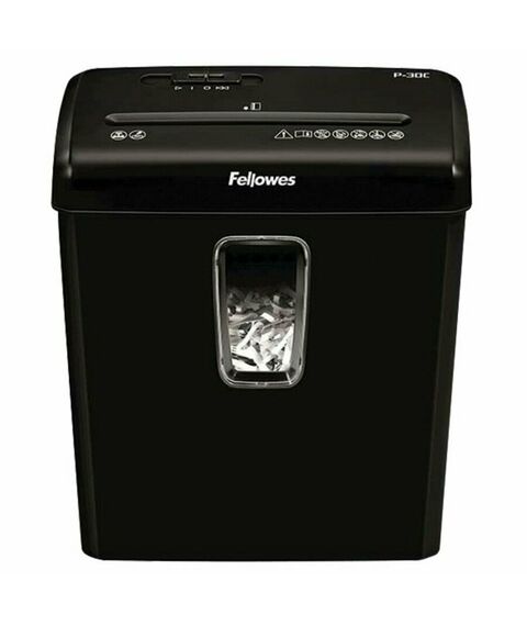 Шредер Fellowes PowerShred Р-30С черный (секр.P-4) фрагменты 6лист. 15лтр. скрепки скобы пл.карты [FS-60081]