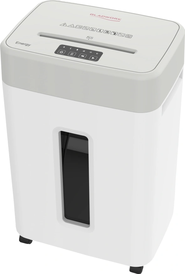 Шредер Gladwork Energy P-18MD серый (секр.P-5) фрагменты 15лист. 35лтр. скрепки скобы пл.карты CD