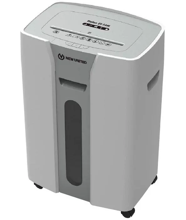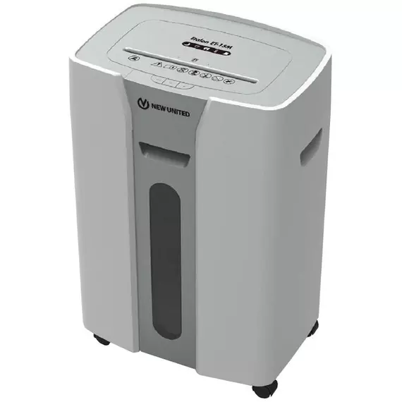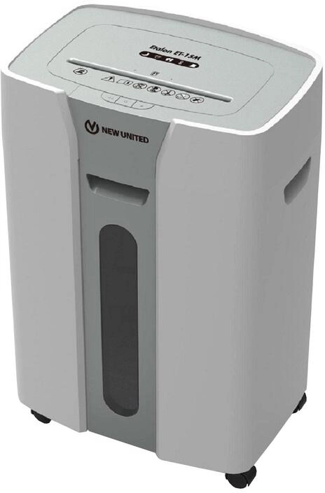 Шредер New United ET-15M серый (секр.P-5) фрагменты 15лист. 25.6лтр. скрепки скобы пл.карты CD