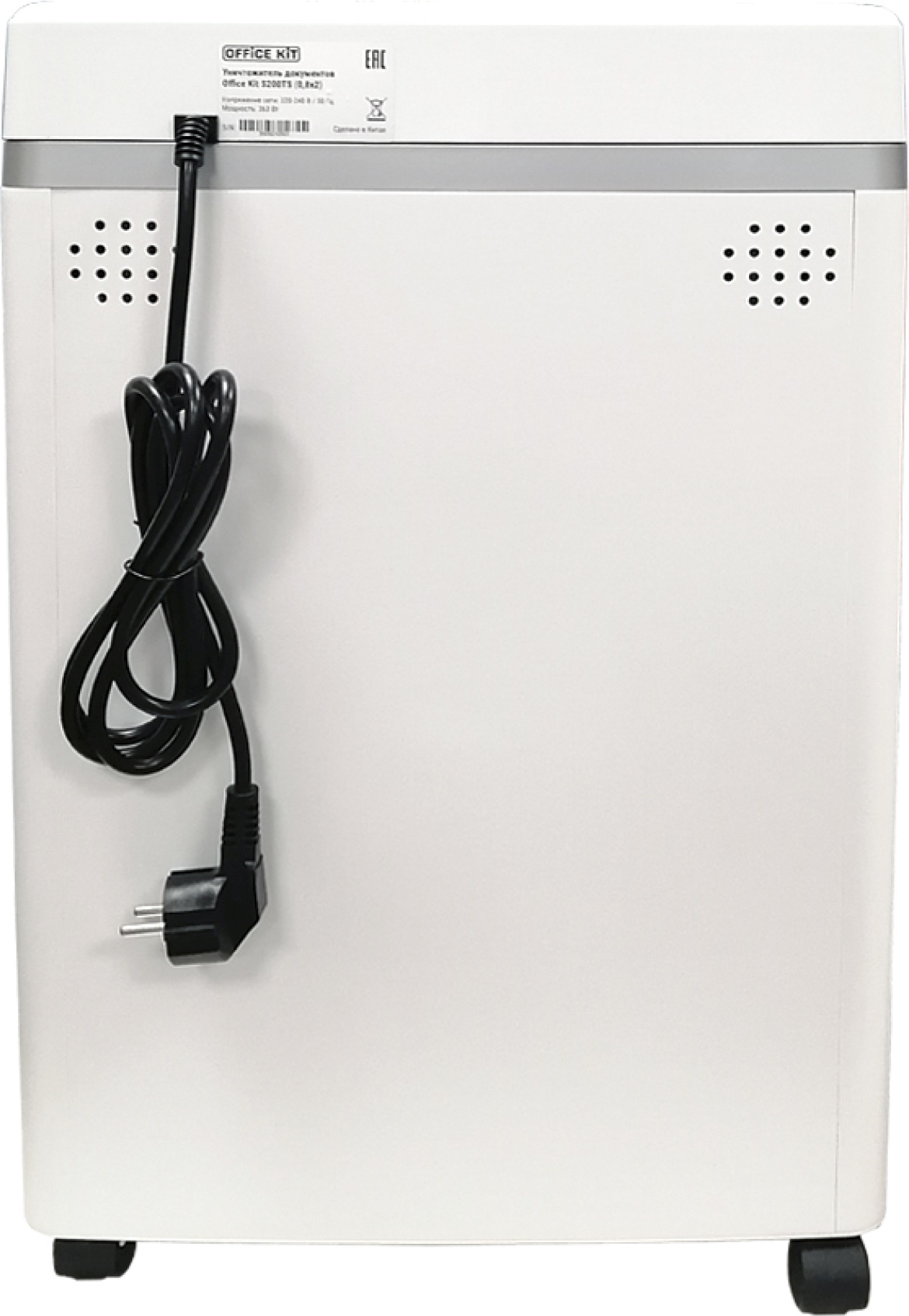 Шредер Office Kit S200TS 0,8x1 белый (секр.P-7) фрагменты 6лист. 25лтр. скобы пл.карты CD [OK0801S200]