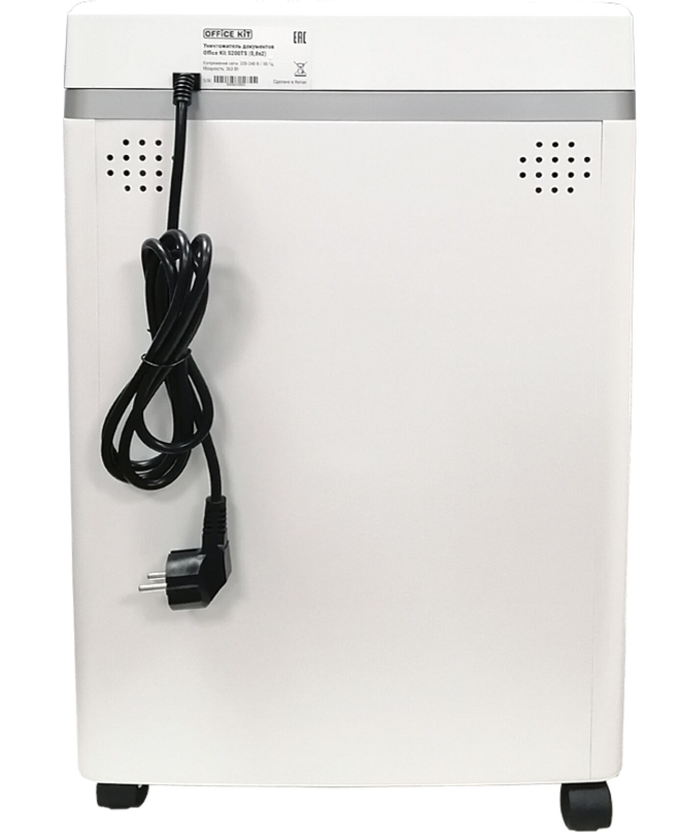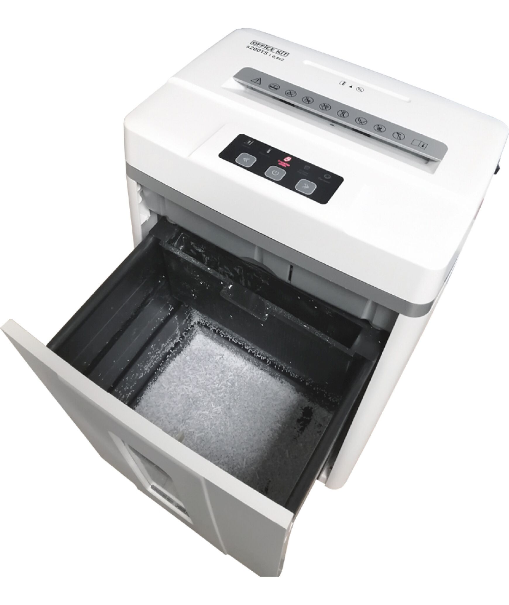 Шредер Office Kit S200TS 0,8x2 белый (секр.P-7) фрагменты 6лист. 25лтр. скобы пл.карты CD [OK0802S200]