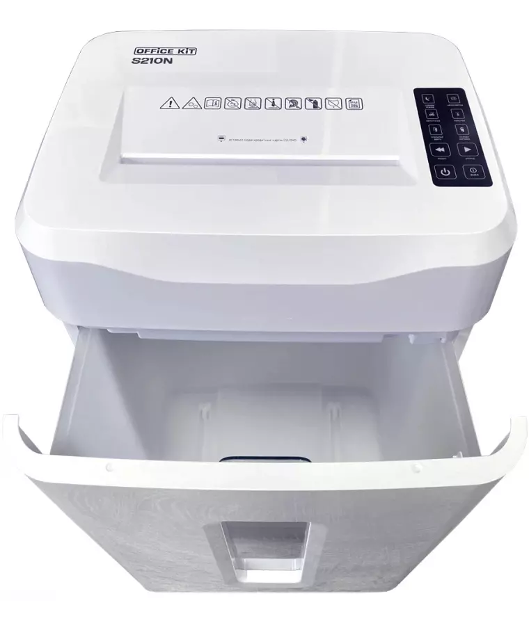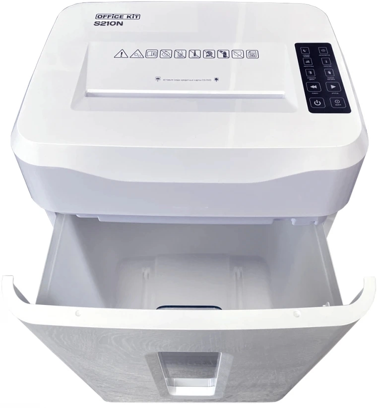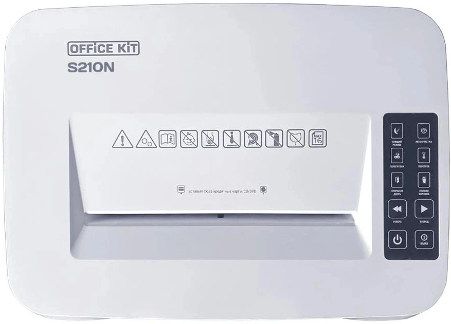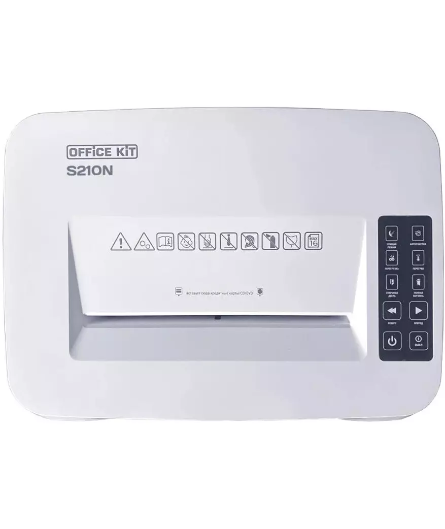 Шредер Office Kit S210N 3,9x38 белый (секр.P-4) фрагменты 16лист. 35лтр. скрепки скобы пл.карты CD [OK0444S210N]