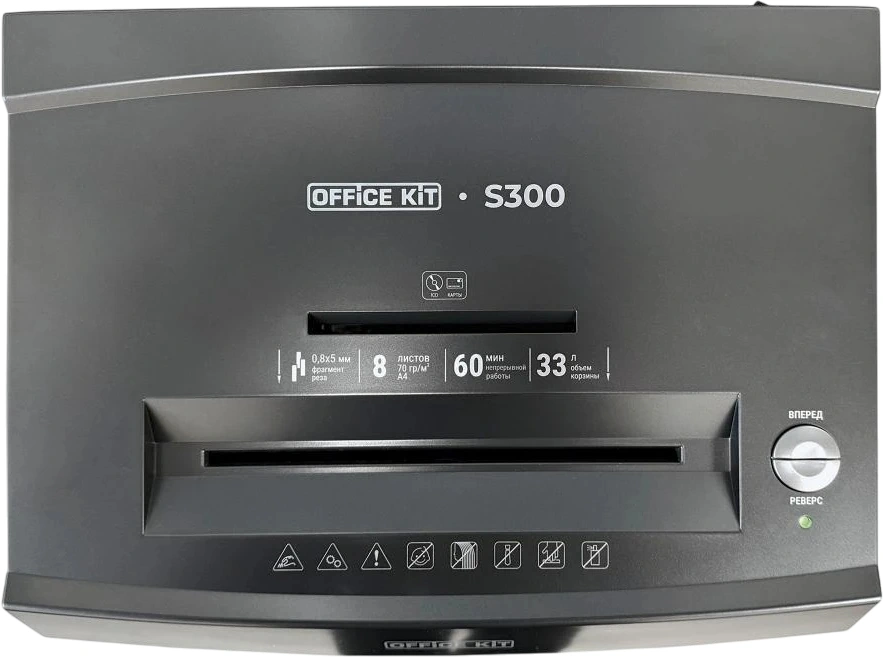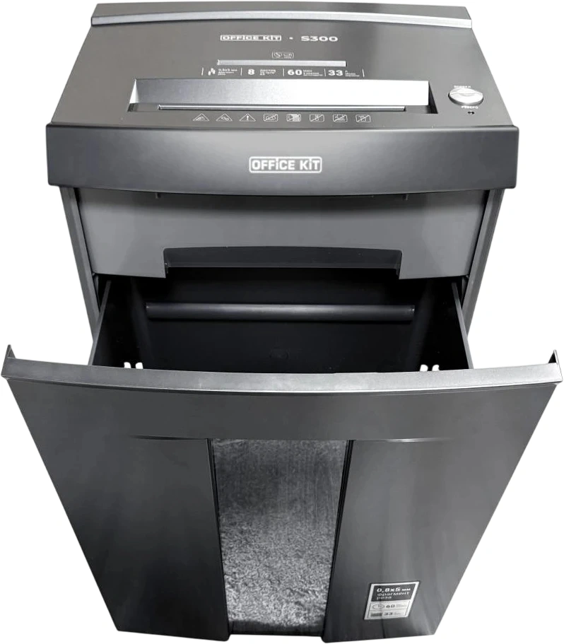Шредер Office Kit S300 0,8x5 черный (секр.P-7) фрагменты 8лист. 33лтр. пл.карты CD [OK0805S300]