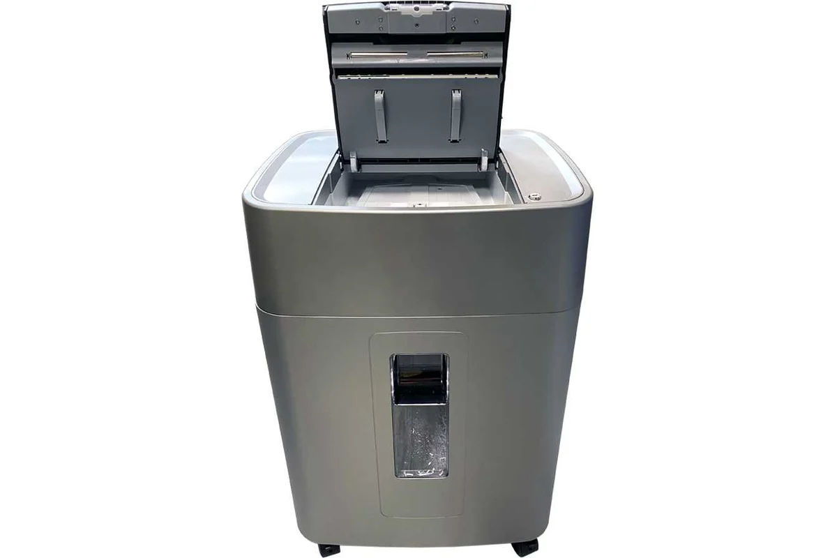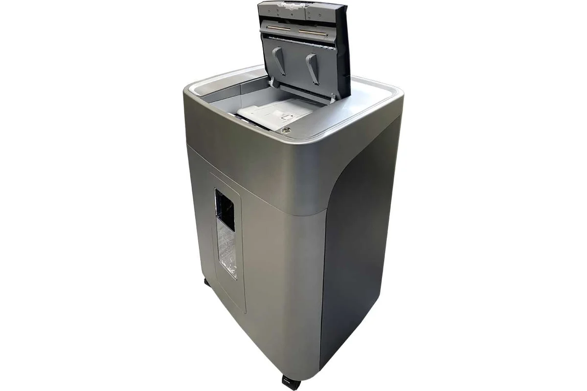 Шредер Office Kit SA300 1,9х15 серый/черный с автоподачей (секр.P-5) фрагменты 300лист. 45лтр. скобы пл.карты [OK1915SA300]