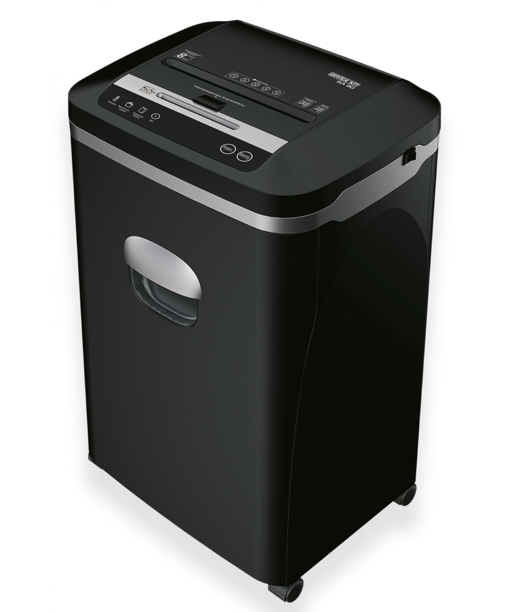 Шредер Office Kit SA80 2x10 (секр.P-5) фрагменты 80лист. 20лтр. скрепки скобы пл.карты CD [OK0210SА80]