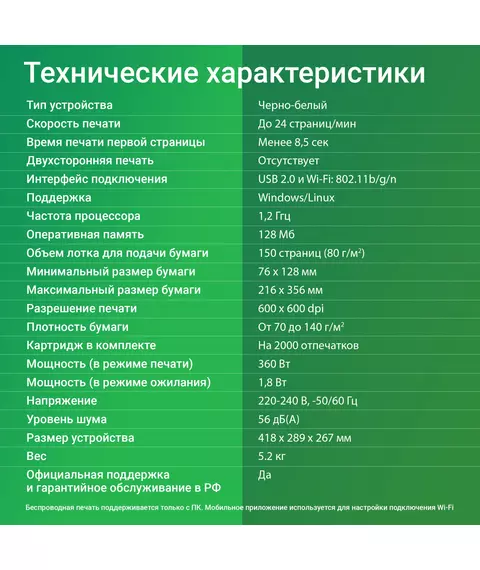 | Скорость печати ЧБ А4 (до) | 24 стр/мин |