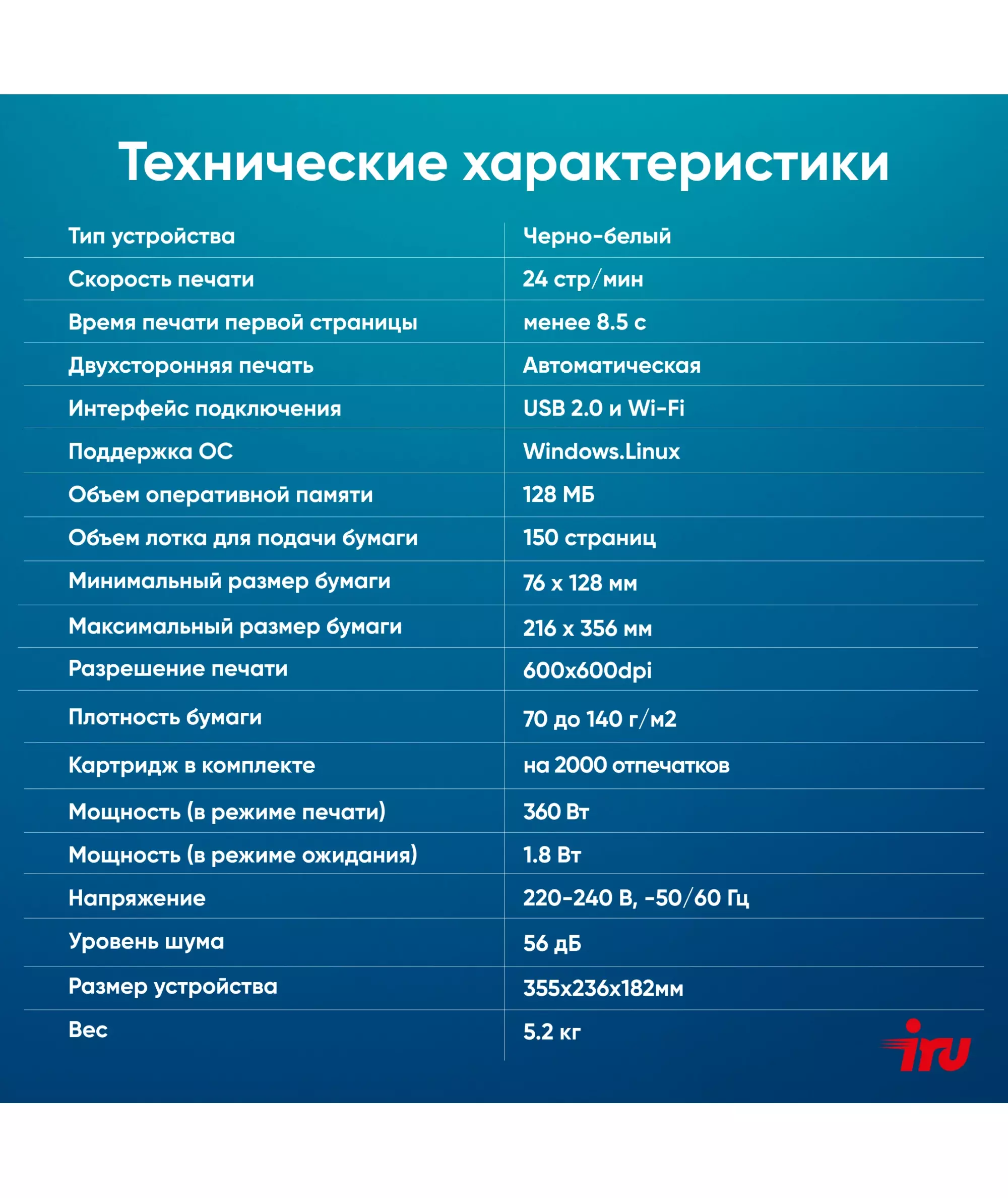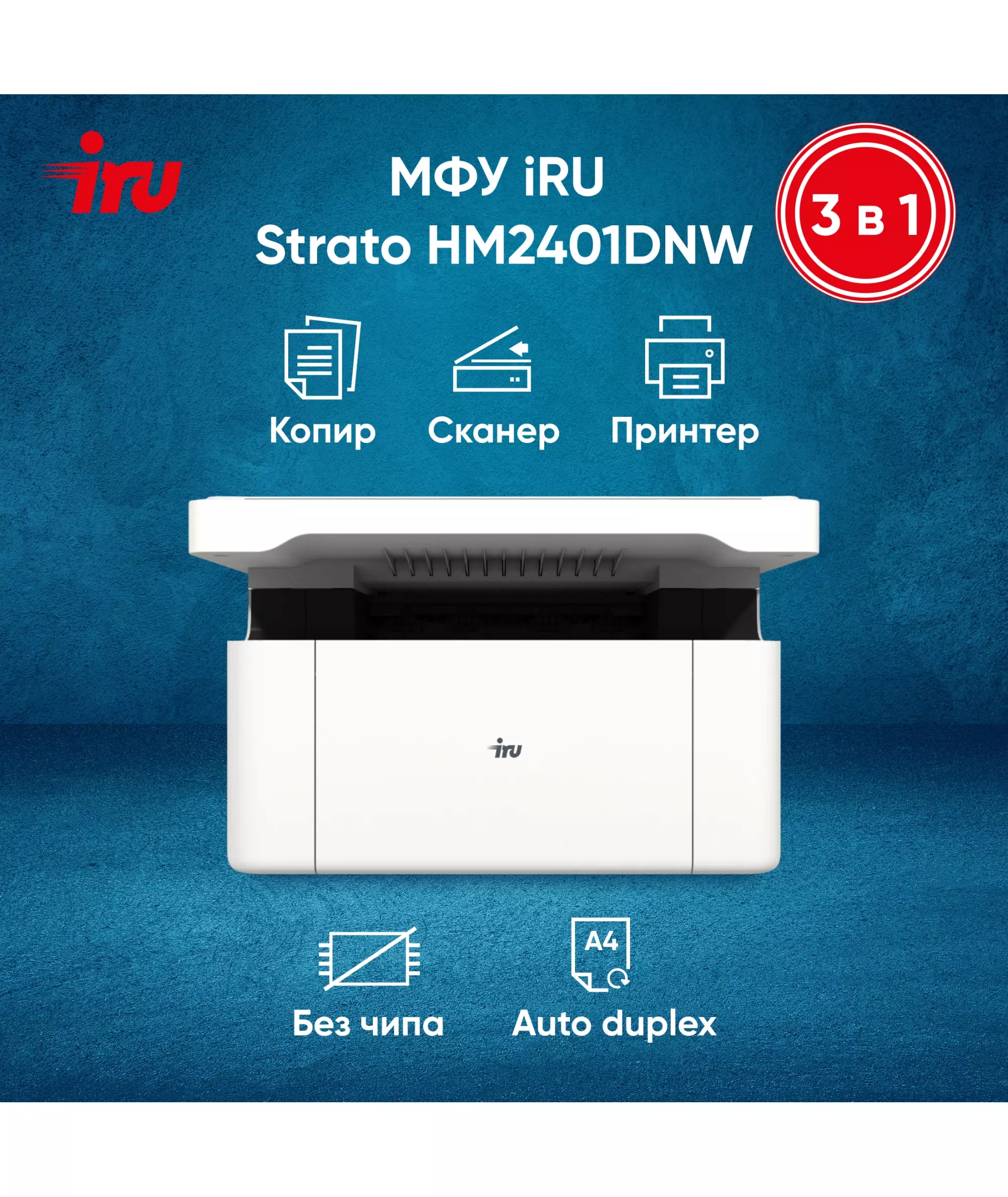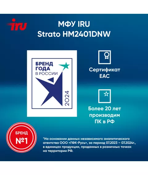 МФУ лазерный iRU HM2401DNW Strato A4 Duplex Net WiFi белый
