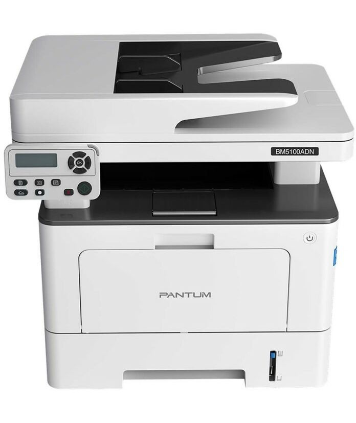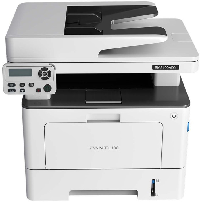 - Pantum BM5100ADN — лазерное МФУ с функциями принтера, планшетного сканера и копира. Оно использует бумагу максимального формата A4 и создает черно-белые тексты и изображения с разрешением до 1200 х 1200 т/д со скоростью до 40 страниц в минуту.
