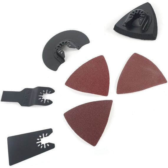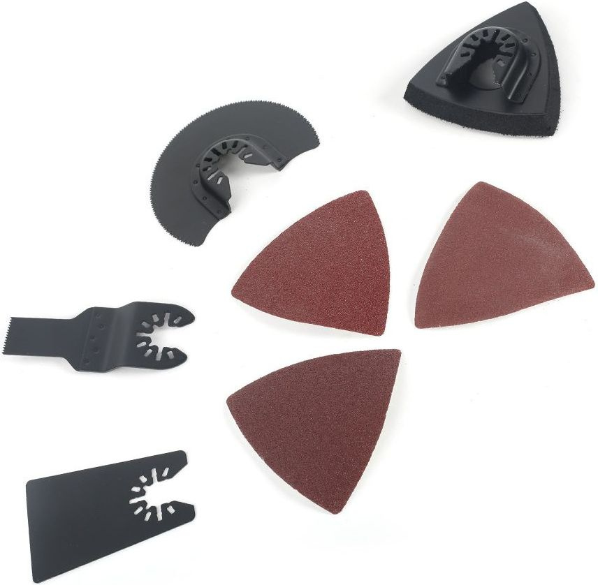 | Дополнительно в комплекте | Многофункциональный инструмент, плитка для шлифовальной бумаги, шлифовальная бумага - 3 шт., прямой резак по дереву, сегментный пильный диск, скребок, инструкция, упаковка. |
