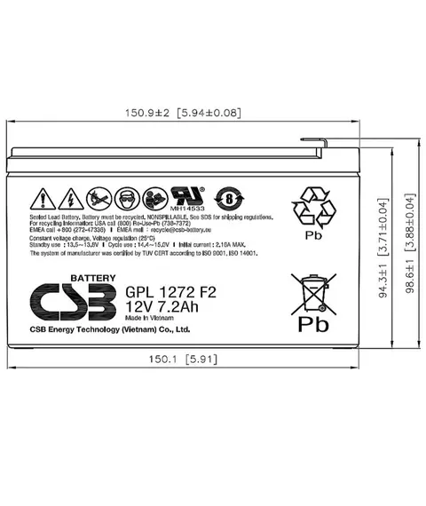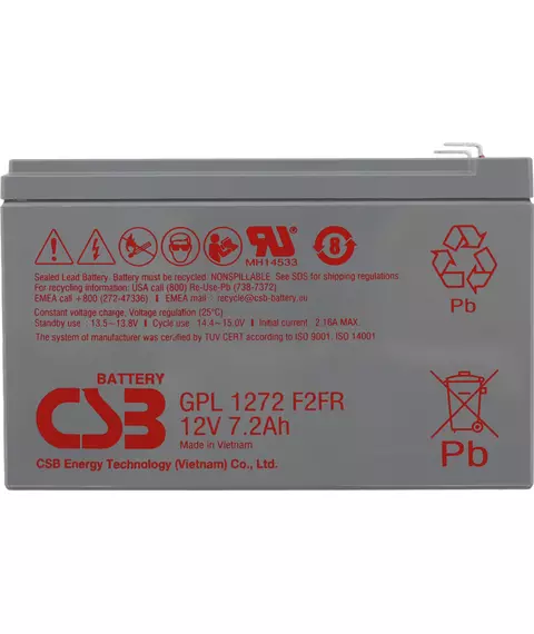 Аккумулятор CSB GPL 1272 - батарея общего применения со сроком службы 8 лет (10-12 лет при 20 °С по классификации Eurobat) в буферном режиме или более 260 циклов заряда-разряда в циклическом режиме при 100% разряде.